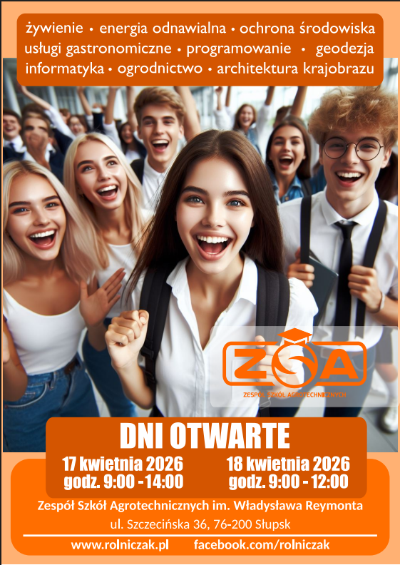 Witaj na stronie Zespołu Szkół Agrotechnicznych im. Władysława Reymonta w Słupsku. Zapraszamy do zapoznania się z ofertą kształcenia oraz aktualnościami szkolnymi.