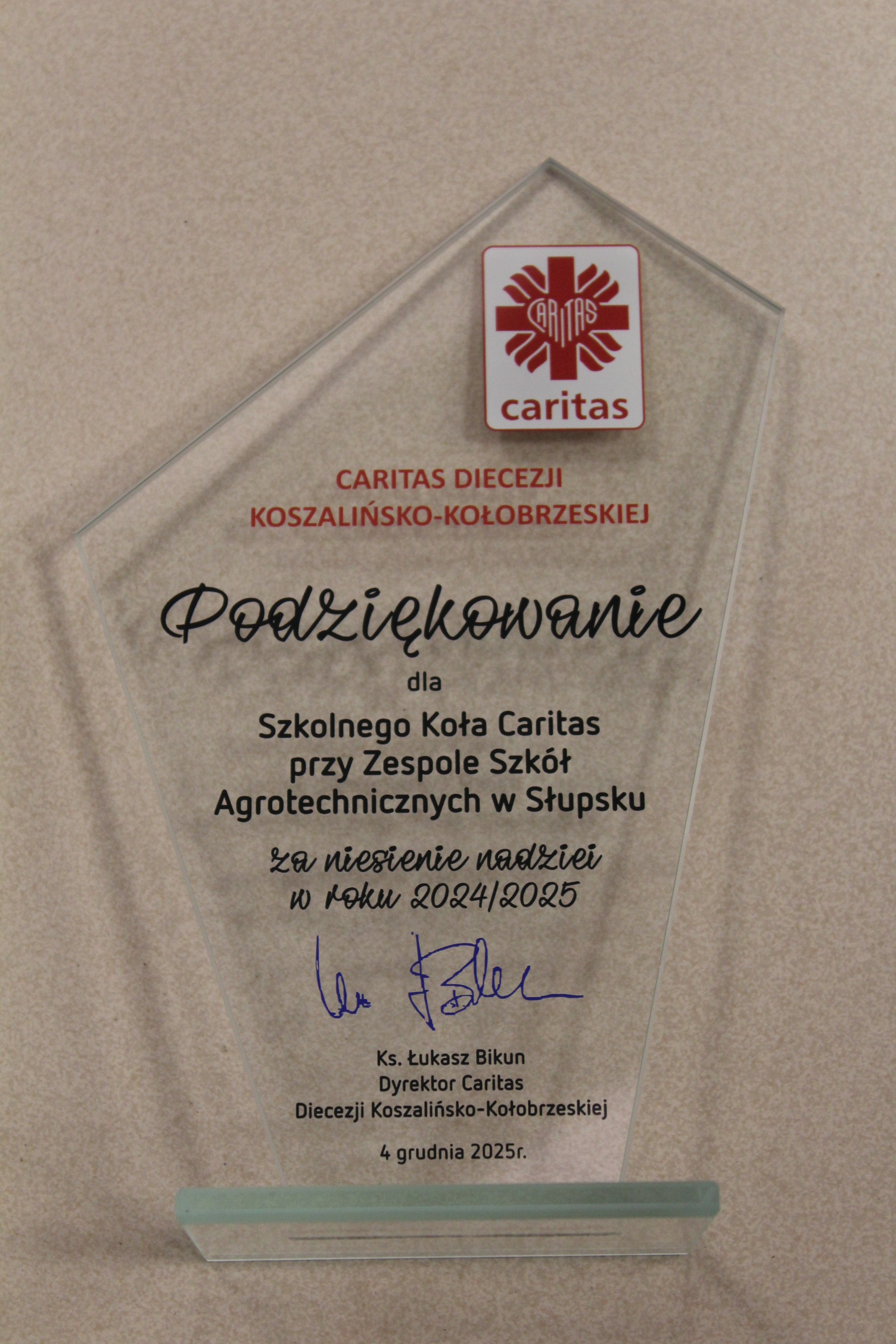 Po niej miała miejsce kolejna oficjalna część gali – przedstawienie ubiegłorocznej pracy przybyłych Szkolnych Kół Caritas oraz Parafialnych Zespołów Caritas, a także wręczenie pamiątkowych statuetek. Cała uroczystość zakończyła się poczęstunkiem.