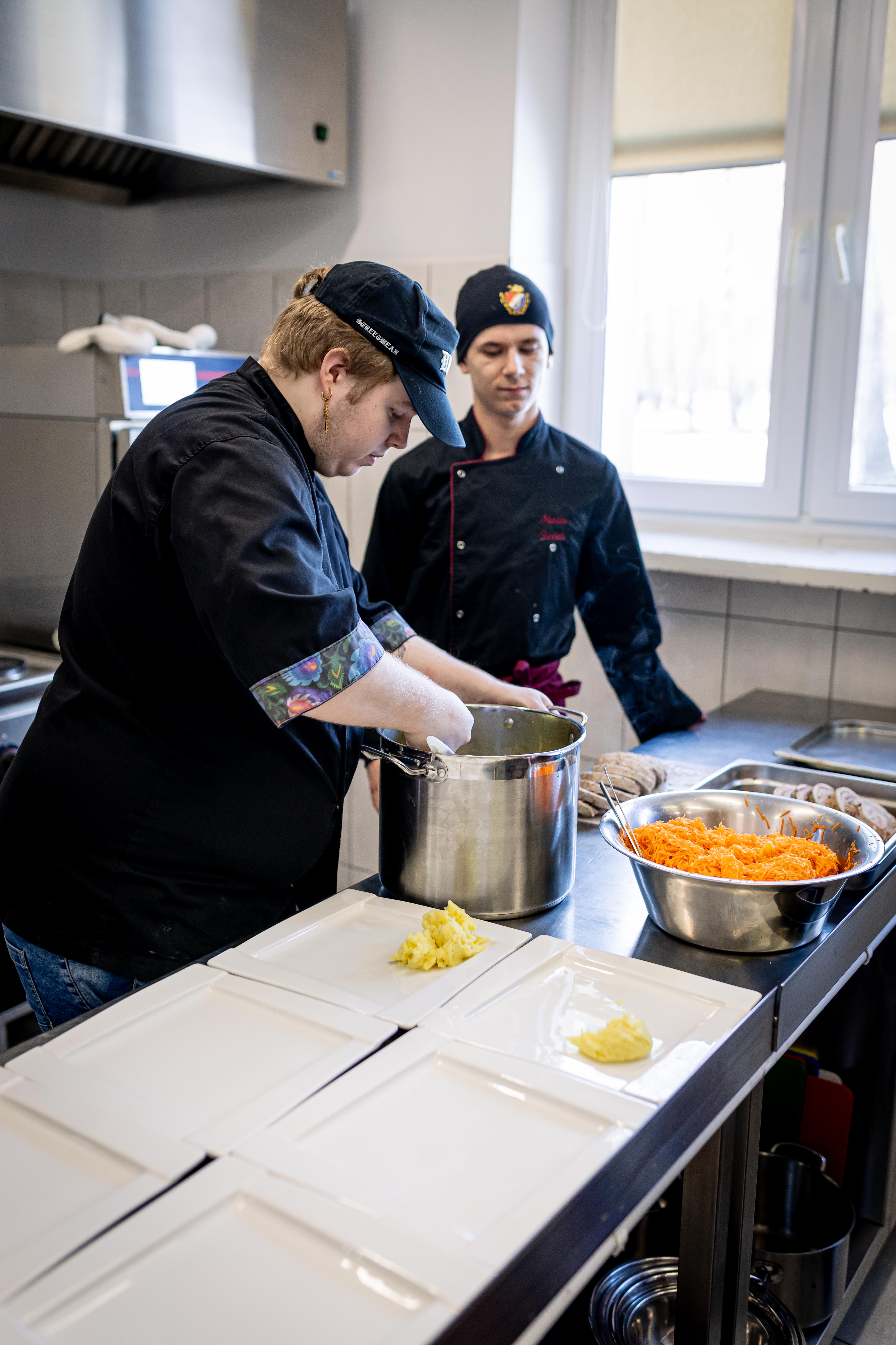 Swoją wiedzą i doświadczeniem podzielili się z nami kucharze z restauracji Hokus Pokus/ Hokus Pokus catering dietetyczny – Patryk Początko oraz Mateusz Głowiński.