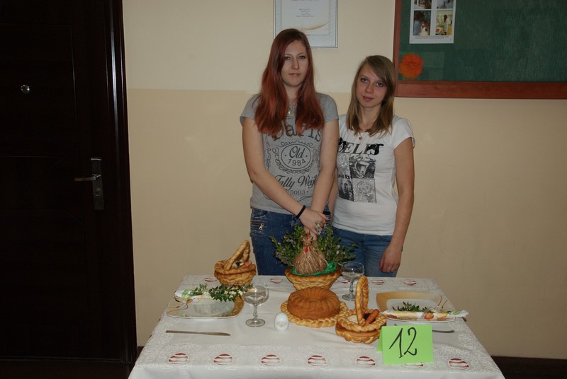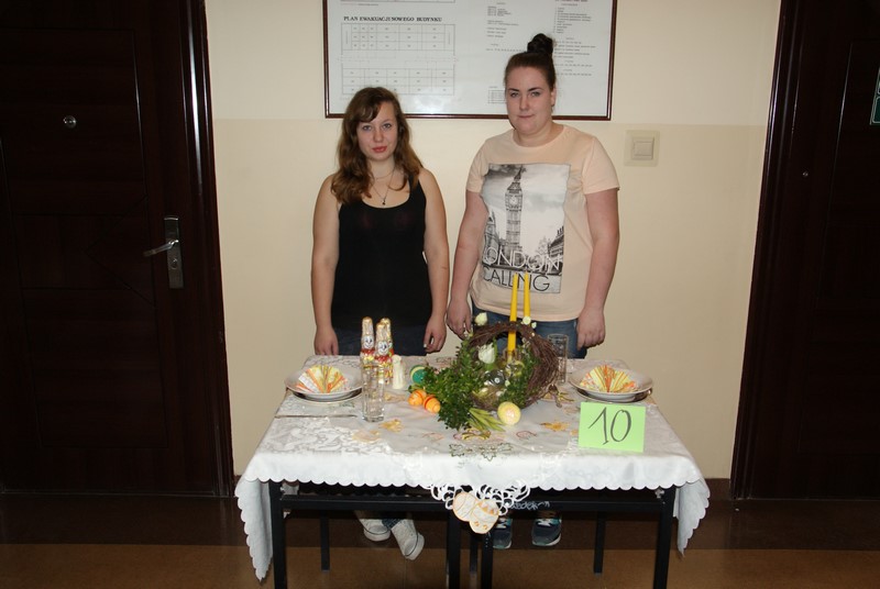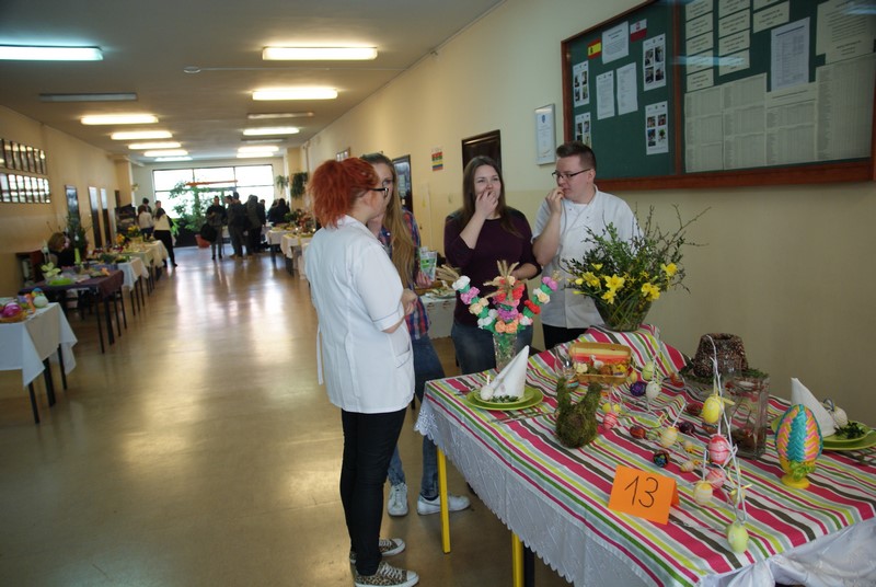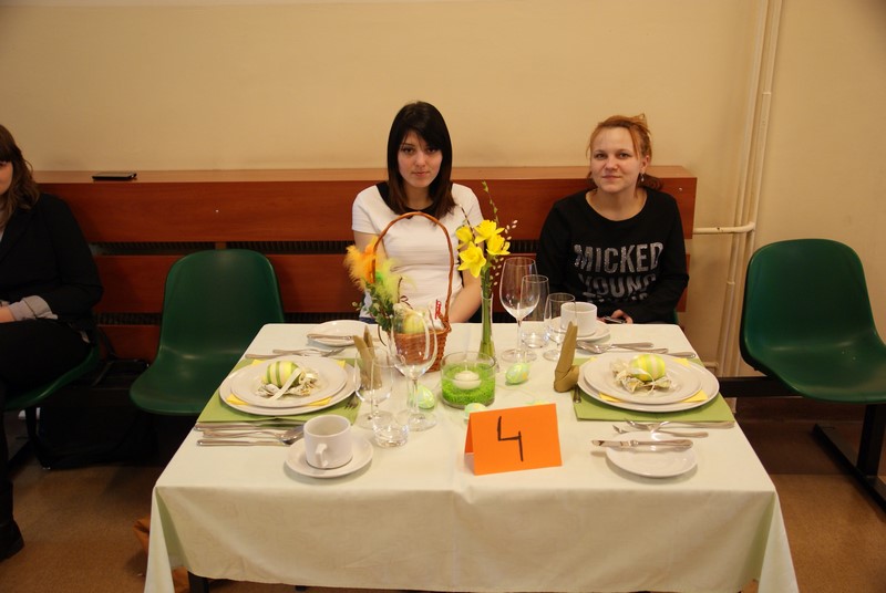 W dniu 24 marca 2015 r. w naszej szkole odbył się konkurs na najpiękniejszy "Stół Wielkanocny". Do konkursu przystąpiło 13 dwuosobowych zespołów, składających się z uczniów klas I - IV kształcących się w technikum oraz szkole zawodowej. Celem było kultywowanie wielkanocnych tradycji świątecznych oraz rozwijanie wrażliwości estetycznej uczniów. Młodzież bardzo poważnie potraktowała konkurs i dołożyła wielu starań, aby ich stół prezentował się jak najlepiej. Wybór był niełatwy. Za najpiękniejszy uznany został stół przygotowany przez uczennice klasy III ZK w składzie Karolina Pieczyńska i Anna Malec, drugie miejsce zajęły uczennice klasy III TUb - Karolina Kondraciuk i Klaudia Brzozowska, a trzecie miejsce uczennice klasy IV TŻiGD - Justyna Konferowicz i Natalia Kowalczyk. Wszyscy uczestnicy otrzymali dyplomy a zwycięzców dodatkowo nagrodzono upominkiem.