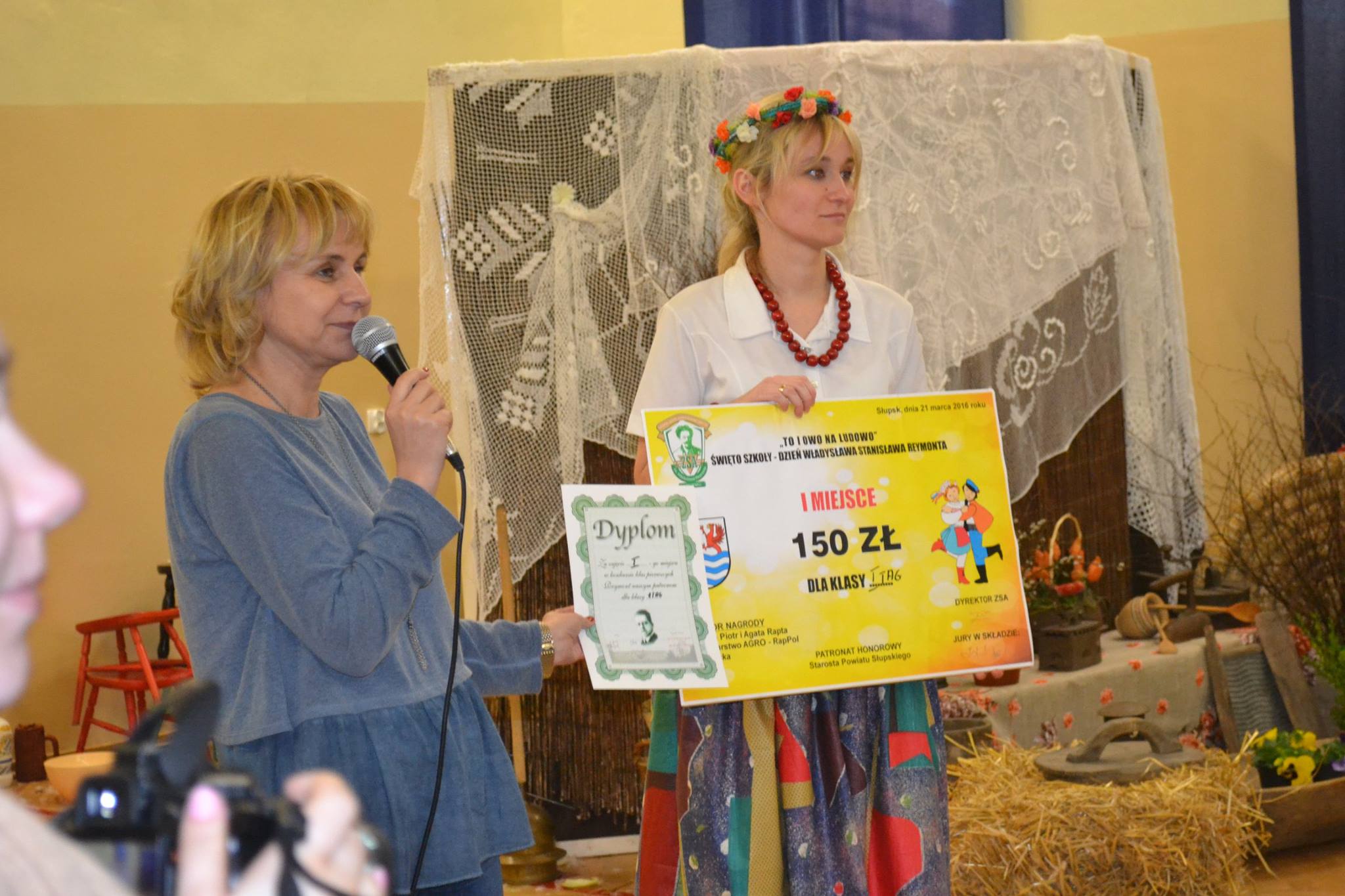 Pierwszy dzień wiosny Zespól Szkół Agrotechnicznych w Słupsku przywitał na ludową nutę. Dosłownie i w przenośni. 21 marca miało miejsce Święto Szkoły. Uczniowie i nauczyciele uczcili pamięć patrona - W. St. Reymonta - stylizując to wydarzenia na realia XIX-wiecznej wsi polskiej. Patronat nad uroczystością objął Starosta Powiatu Słupskiego - Zdzisław Kołodziejski. Swoją obecnością szkolną społeczność zaszczycili: radny Powiatu Słupskiego - Paweł Lisowski, dyrektor Muzeum Pomorza Środkowego - Marzenna Mazur, dyrektor Centrum Edukacji Regionalnej - Mariusz Smoliński. Imprezę otworzyła dyrektor ZSA - Iwona Wojtkiewicz.