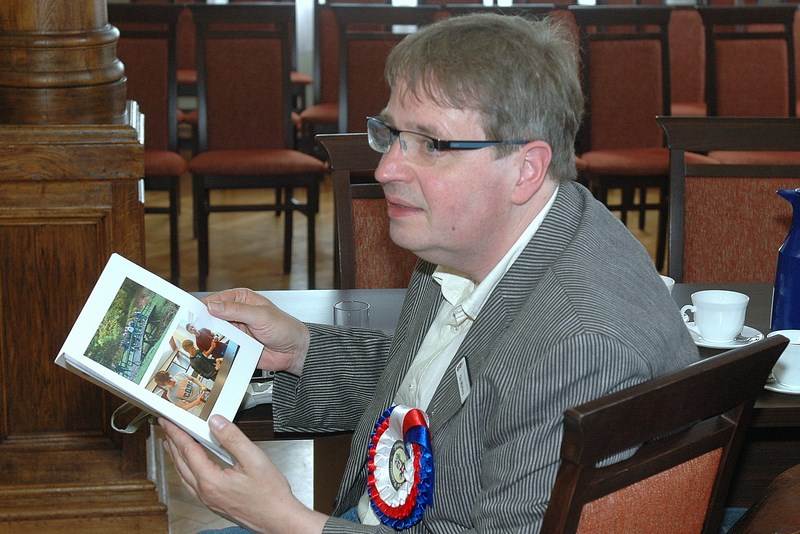 Paweł Jaszek omówił (w języku niemieckim) przebieg dotychczasowej współpracy uczniów ZSA z młodzieżą z Powiatu Herzotum Lauenburg. Jego wystąpienie wzbogaciły prezentacja multimedialna oraz pamiątkowy folder z licznymi zdjęciami. Każdy uczestnik spotkania otrzymał ww. folder, dokumentujący przebieg spotkań młodzieży naszej szkoły oraz z centrów młodzieżowych w Ratzeburgu i Bṻchen.