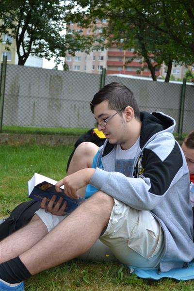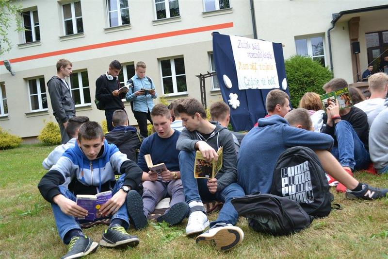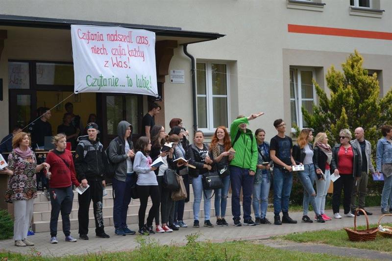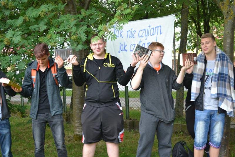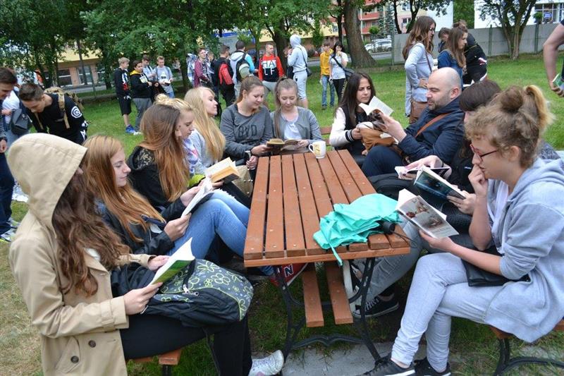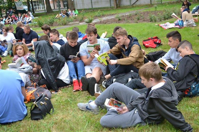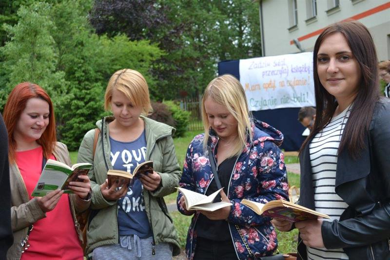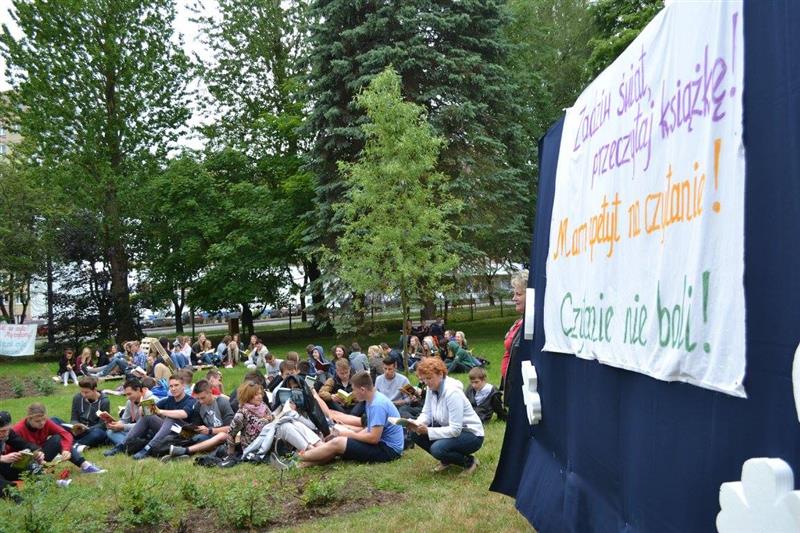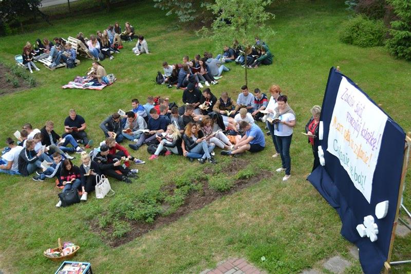 10 czerwca uczestniczyliśmy w Ogólnopolskiej Akcji Masowego Czytania pod hasłem "Jak nie czytam, jak czytam", której celem było promowanie książek wśród uczniów , inicjowanie mody na czytanie. O godz. 10 ustanawialiśmy rekord czytania w jednym momencie. Tworzyliśmy również łańcuch książek przy piosence "Chirurgia plastyczna" w wykonaniu Dominiki Majewskiej z klasy 2 TU. Był również wspólny aerobic i pyszne śniadanie na trawie. Czytaniu towarzyszyła doskonała zabawa, było dużo radości i uśmiechu. Organizatorem imprezy była Biblioteka Szkolna i Samorząd Uczniowski.