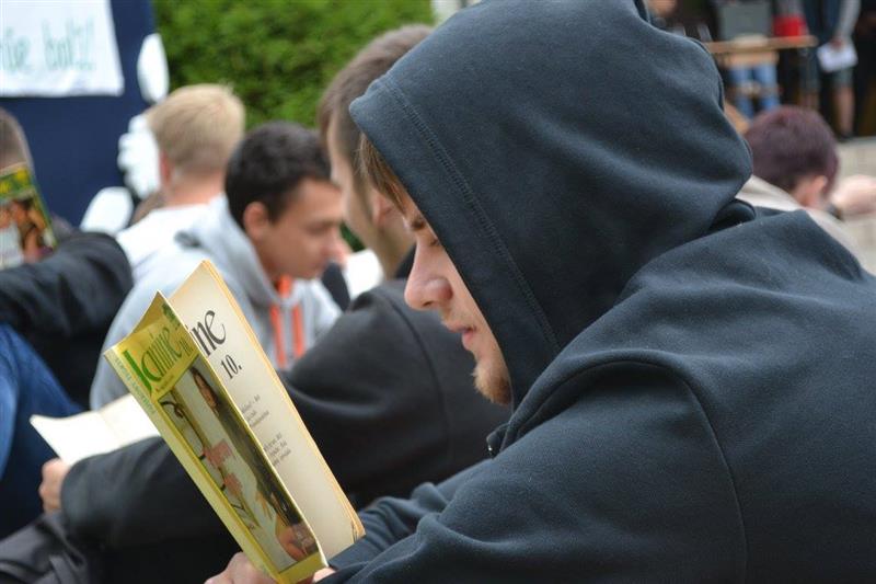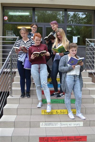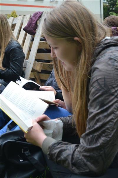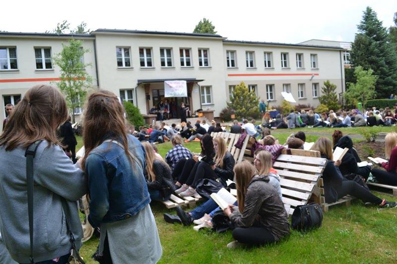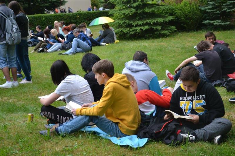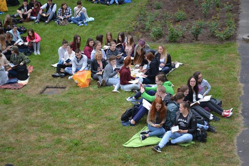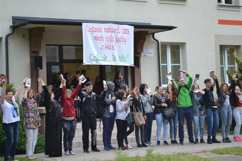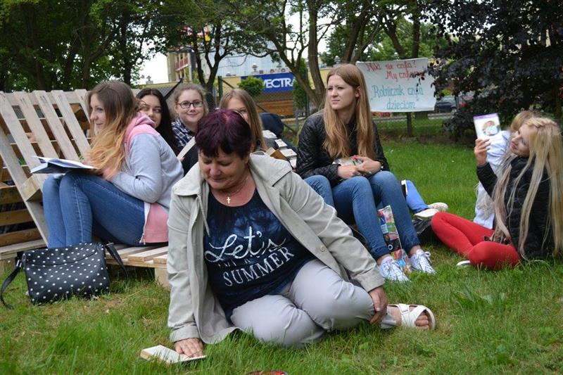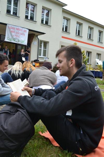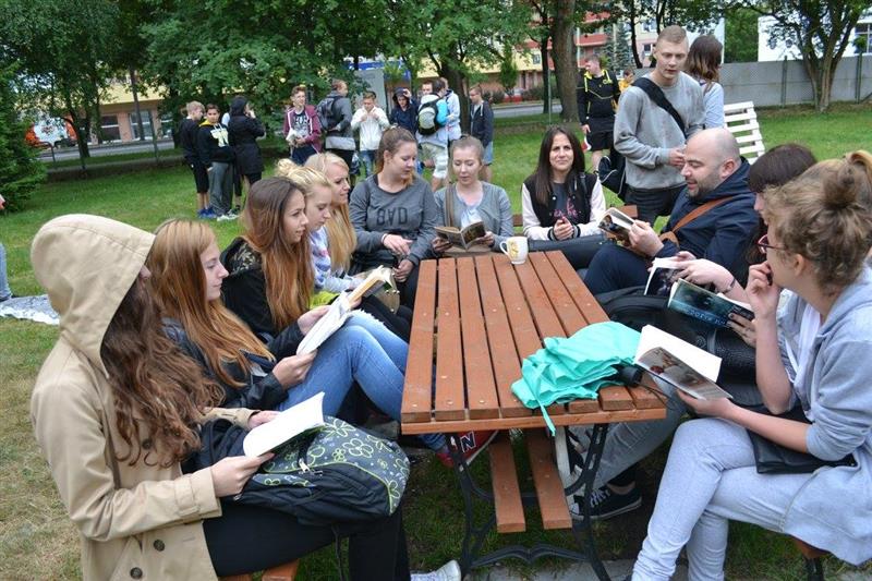10 czerwca uczestniczyliśmy w Ogólnopolskiej Akcji Masowego Czytania pod hasłem "Jak nie czytam, jak czytam", której celem było promowanie książek wśród uczniów , inicjowanie mody na czytanie. O godz. 10 ustanawialiśmy rekord czytania w jednym momencie. Tworzyliśmy również łańcuch książek przy piosence "Chirurgia plastyczna" w wykonaniu Dominiki Majewskiej z klasy 2 TU. Był również wspólny aerobic i pyszne śniadanie na trawie. Czytaniu towarzyszyła doskonała zabawa, było dużo radości i uśmiechu. Organizatorem imprezy była Biblioteka Szkolna i Samorząd Uczniowski.