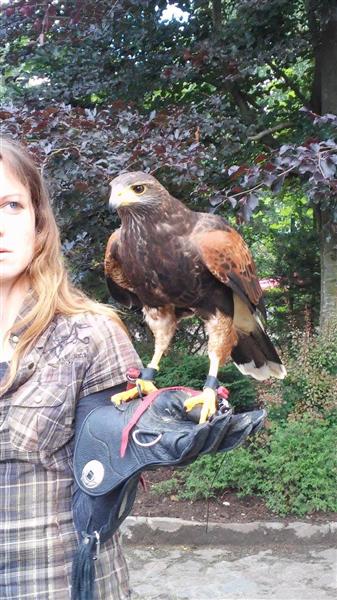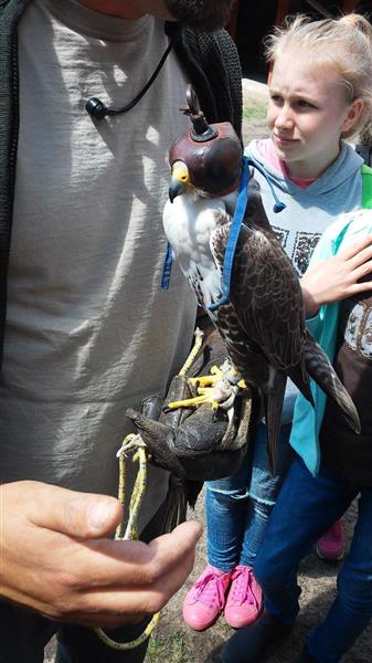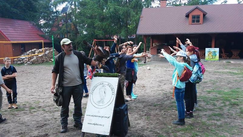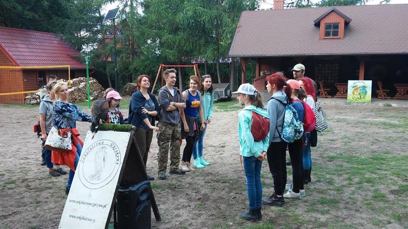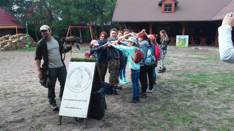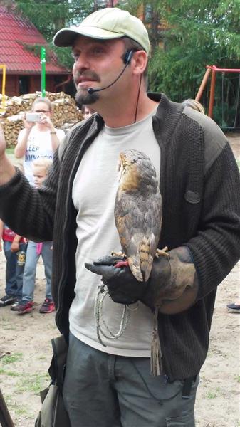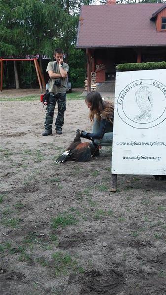 Po powrocie do punktu zbioru czekala na Nas niespodzianka. Byla nią para sokolników, zajmujących się układaniem ptactwa. Mogliśmy na żywo zobaczyć ptaki, które w normalnych warunkach raczej ciężko dostrzec. Podziwialiśmy, jak zachowują się sowy, sokoły i inne drapieżniki. Potem czekalo na nas ognisko.