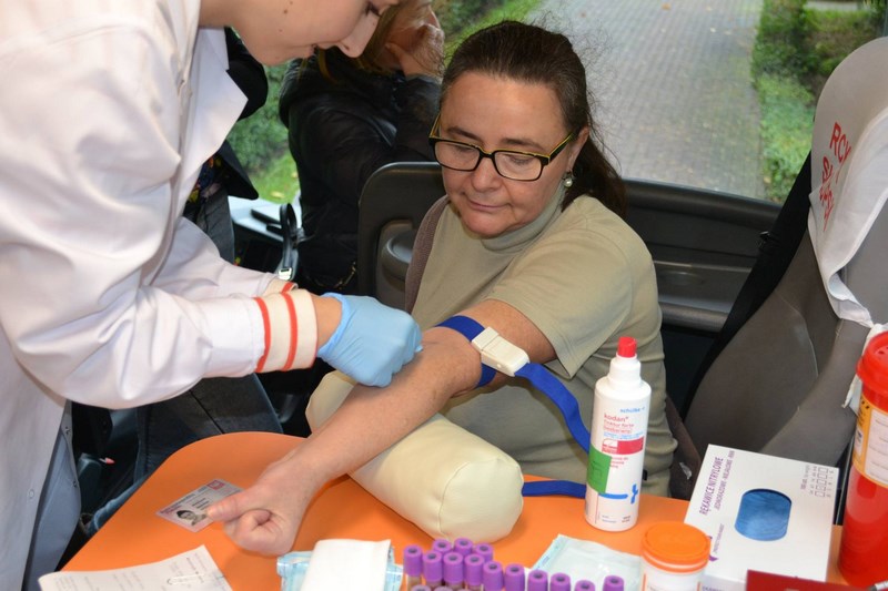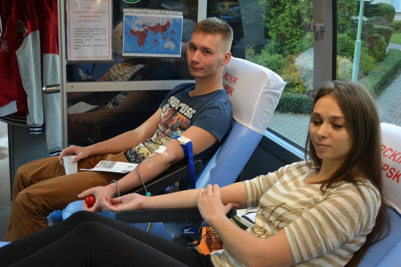 W piątek 23 października 2015r., zgodnie z naszą wieloletnią tradycją, odbyła się w naszej szkole akcja oddawania krwi, w której wzięli udział zarówno uczniowie (80 osób), jak i nauczyciele szkoły (5 osób). Pierwsza grupa oddała krew w Rejonowym Centrum Krwiodawstwa i Krwiolecznictwa w Słupsku przy ul. Szarych Szeregów. Druga grupa oddała krew w krwiobusie na terenie szkoły. Akcja zakończyła się dużym sukcesem - łącznie oddano 19 litrów pełnej krwi. Wszystkim honorowym krwiodawcom bardzo dziękujemy!!!