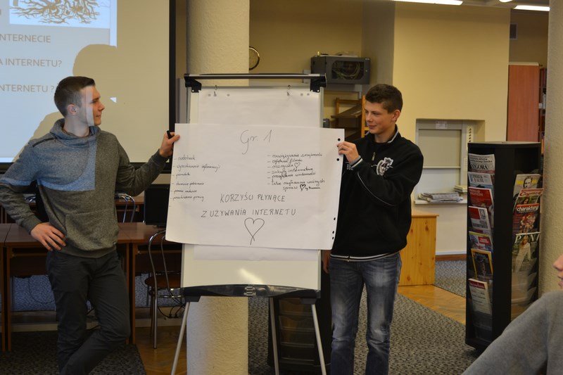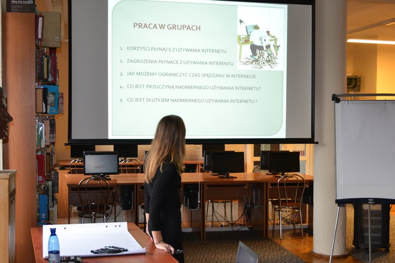 21 października 2015 roku uczestniczyliśmy w spotkaniu w Miejskiej Bibliotece Publicznej w Słupsku Jego tematem były zagrożenia i konsekwencje wynikające z intensywnego funkcjonowania w wirtualnym świecie. Spotkanie poprowadziła Hanna Rakowska studentka V roku psychologii na Uniwersytecie SWPS w Sopocie. Spotkanie miało charakter zajęć edukacyjno-warsztatowych. W zajęciach w MBP w Słupsku uczestniczyli uczniowie z klasy 3 technik informatyk i klasy 2 technik architektury krajobrazu.