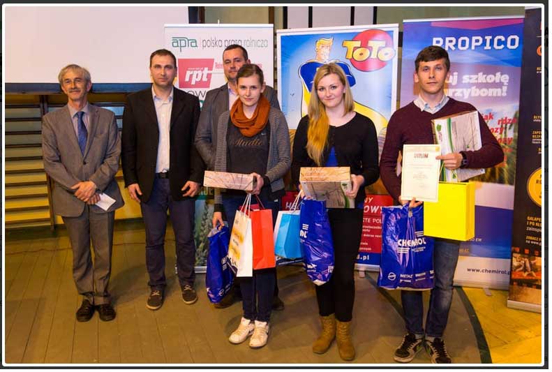 11 kwietnia br. odbyły się w Karolewie XXXIII eliminacje okręgowe Olimpiady Wiedzy i Umiejętności Rolniczych obejmujące swym zasięgiem woj. kujawsko-pomorskie i pomorskie. Duży sukces odnieśli uczniowie Zespołu Szkół Agrotechnicznych zajmując tego dnia czołowe miejsca w dwóch blokach: żywienie człowieka oraz architektura krajobrazu. Każdy z nich rozwiązywał test składający się z sześćdziesięciu pytań i wykonywał trzy zadania praktyczne. Są to następujący uczniowie: