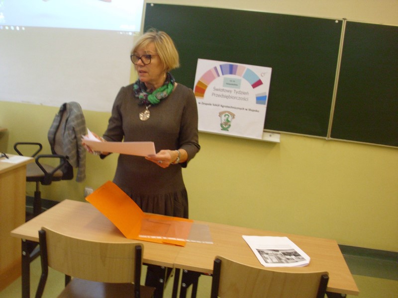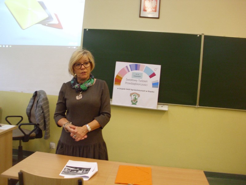 W ramach Światowego Tygodnia Przedsiębiorczości dniu 16 listopada uczniowie klasy IV TAK uczestniczyli w zajęciach pod hasłem „Zawody przyszłości”. Zajęcia prowadziła p. Ewa Olszówka, doradca zawodowy i psycholog z Centrum Edukacji i Pracy OHP w Słupsku.