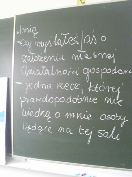 Uczniowie wykonywali ćwiczenia rozwijające pomysłowość i kreatywność, dotyczące np. zastosowania prostych przedmiotów, rozwiązywali test sprawdzający cechy i umiejętności przedsiębiorcze. Podsumowaniem zajęć były prezentacje przedstawiające najlepsze sposoby rozpoczęcia działalności gospodarczej oraz rady europejskich przedsiębiorców dla osób planujących podjecie pracy na własny rachunek.