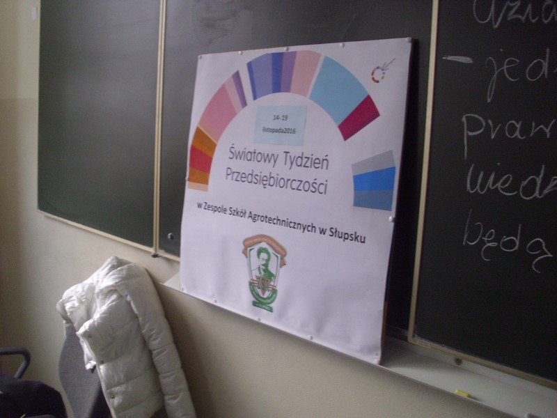 Ocenę własnych predyspozycji przedsiębiorczych umożliwiły uczniom zajęcia warsztatowe prowadzone w ramach Światowego Tygodnia Przedsiębiorczości , w dniu 16 listopada przez p. Sylwię Kozłowską - Zapiec, psychologa oraz doradcę zawodowego z Centrum Informacji i Planowania Kariery Zawodowej w Słupsku.
