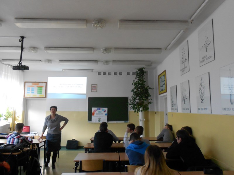 Uczniowie z dużym zaangażowaniem wykonywali ćwiczenia kształtujące umiejętności określania własnych celów. Prowadząca omówiła czynniki , jakie należy wziąć pod uwagę podczas planowania swojej kariery oraz uświadomiła uczniom, że dzięki pracy można zarobić pieniądze, natomiast dzięki karierze można kształtować swoje życie. Przybliżyła pojęcie marki osobistej oraz określiła na czym polega jej tworzenie opierając się na stwierdzeniu, że utrzymanie pozytywnego podejścia do realizacji celów otwiera nowe ścieżki sukcesu życiowego.