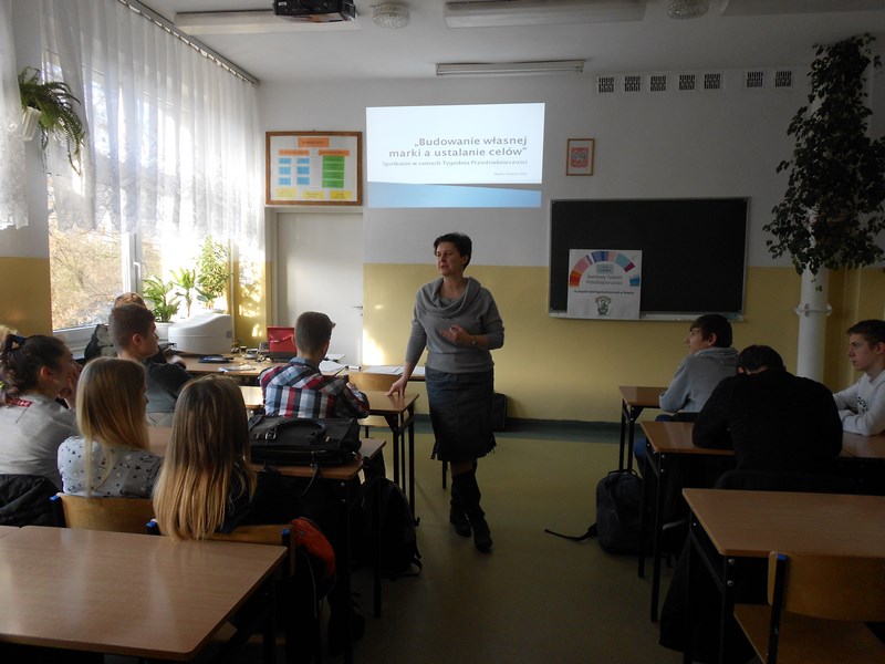 W zajęciach prowadzonych w ramach Światowego Tygodnia Przedsiębiorczości przez p. Anetę Matyjaszek, trenera umiejętności psychospołecznych, właścicielki agencji doradztwa personalnego „Humanus” w Słupsku uczestniczyli uczniowie klasy II TAG.