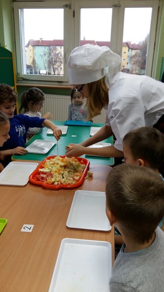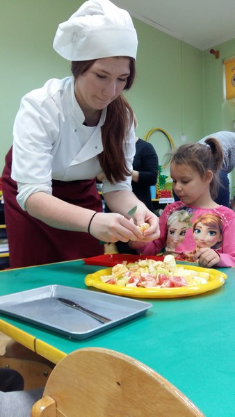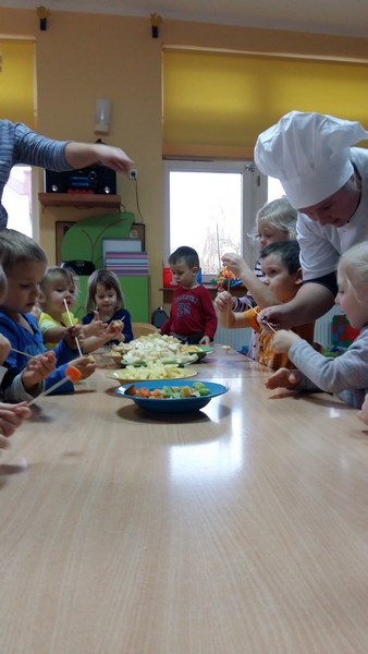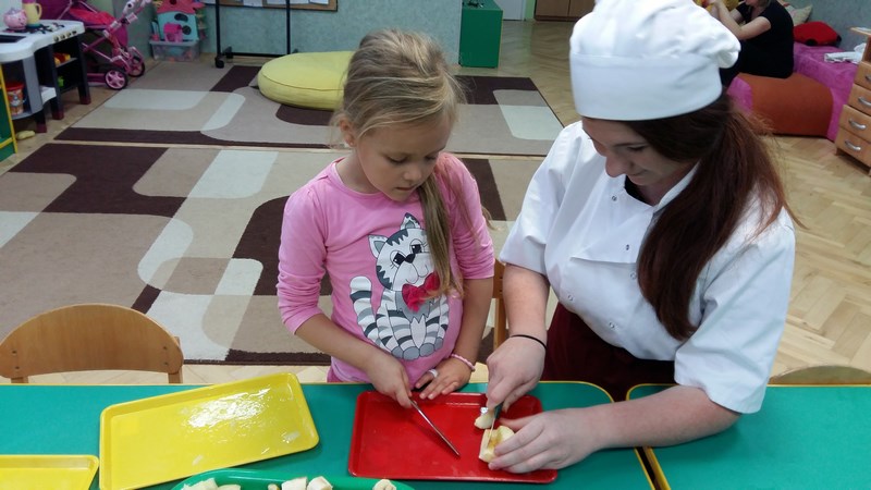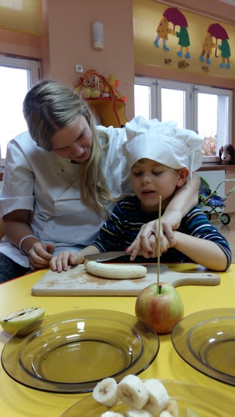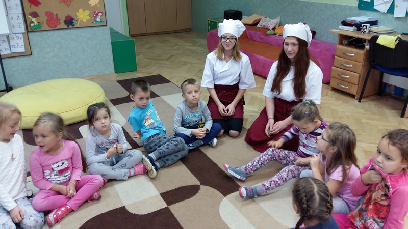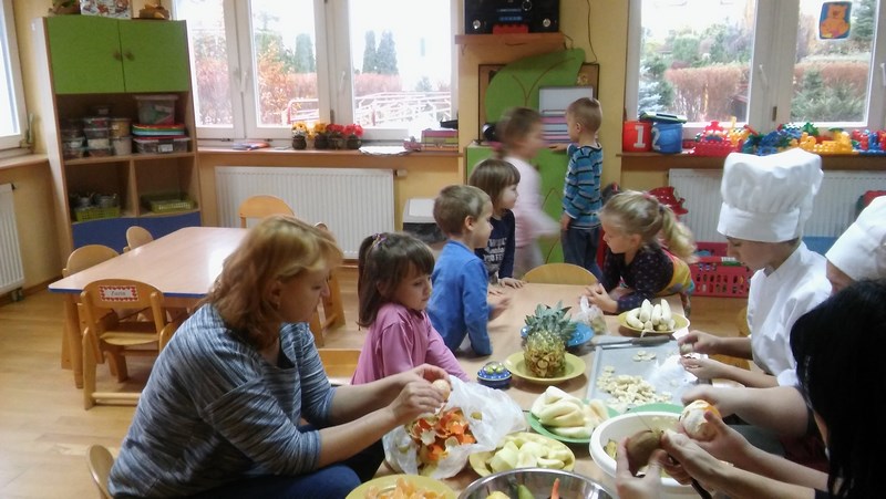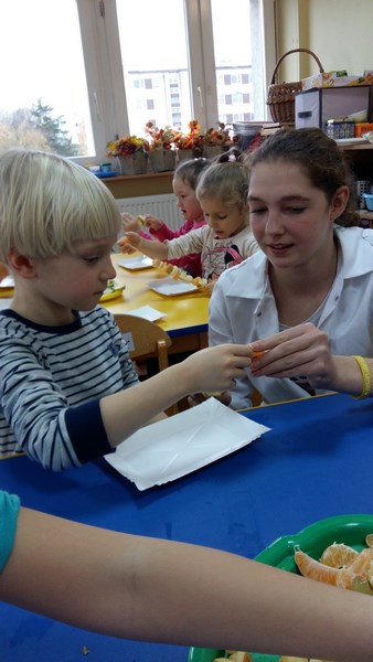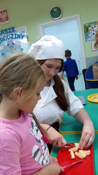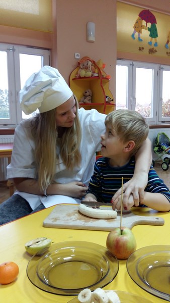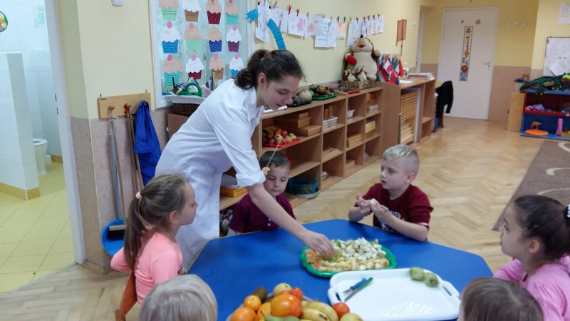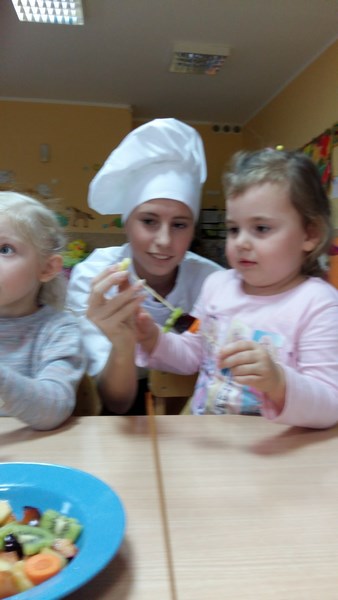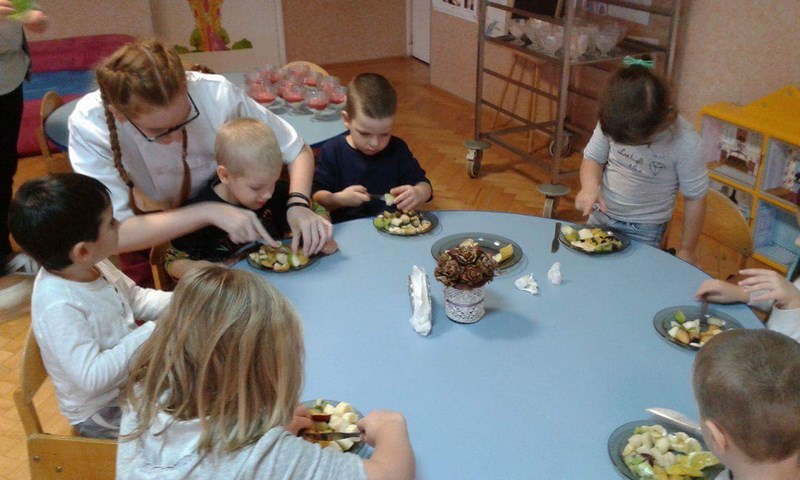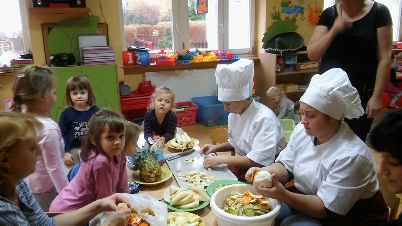 W ramach współpracy z Miejskim Przedszkolem Integracyjnym nr 8 w Słupsku uczniowie z klas o profilu żywieniowym i wolontariusze raz w miesiącu organizują Zdrowe Drugie Śniadanie dla przedszkolaków. Całoroczna akcja ma na celu kształtowanie nawyków zdrowego żywienia. Najlepszym sposobem na przekonanie najmłodszych do spożywania owoców są działania praktyczne. Dlatego 17 listopada br. uczennice klasy 1 TUŻ odwiedziły Miejskie Przedszkole Integracyjne nr 8 w Słupsku.