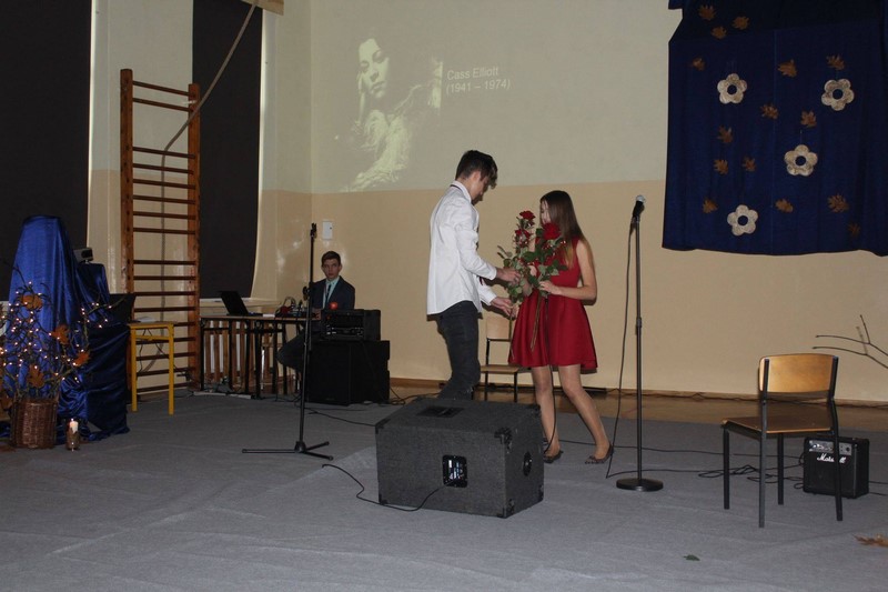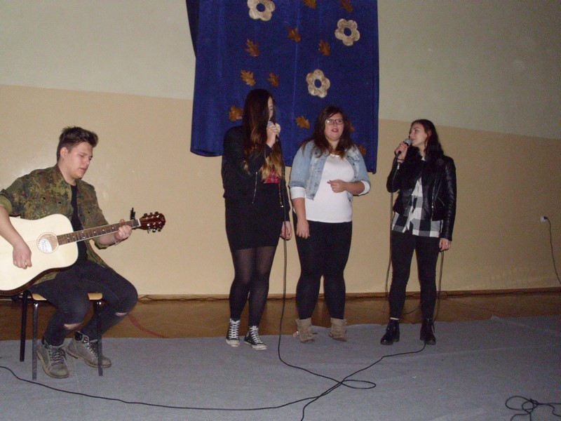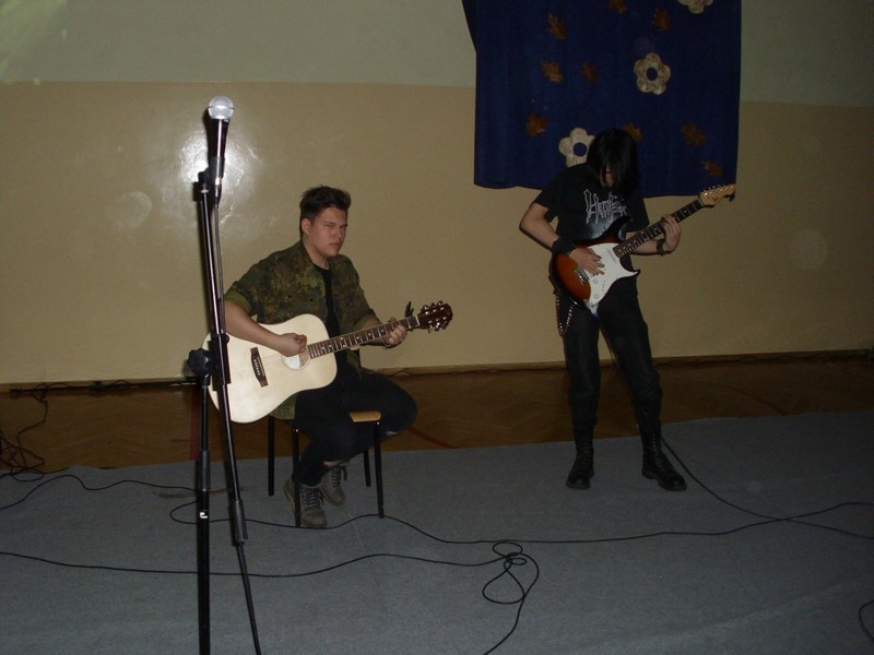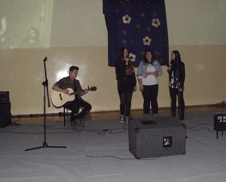 Perfekcyjną grę na gitarze zademonstrowali Rafał Ochota (kl. 4 TUb) i Kuba Wilgucki (kl. 1 TEG). Wspólnie uczcili pamięć Jimiego Hendrixa, zagrali znany utwór „Wild Thing”. Gitarzyści towarzyszyli również swoją grą Dominice Majewskiej i Agacie Sokołowskiej (kl. 3 TU) podczas wykonywania przez nie piosenki zespołu Breakout pt. „Gdybyś kochał hej”. Uczennice zaśpiewały również inne znane utwory. Agata przypomniała publiczności czasy bigbitu, kiedy to gwiazdą polskiej muzyki rozrywkowej była Katarzyna Sobczyk. Zaśpiewała jej przebój „O mnie się nie martw”. Rolę porzuconego, załamanego mężczyzny zagrał Adrian Kuźma (kl.1 TU). Wielu wzruszeń dostarczył występ Dominiki Majewskiej, która wykonała utwór „Dream a little dream of me” z repertuaru Cass Eliott. Publiczność zachwyciła się również wykonaniem piosenki „Imagine” przez Nikolę Kędrę uczennicę Gimnazjum w Potęgowie.