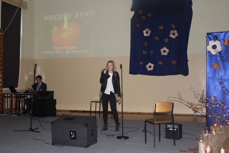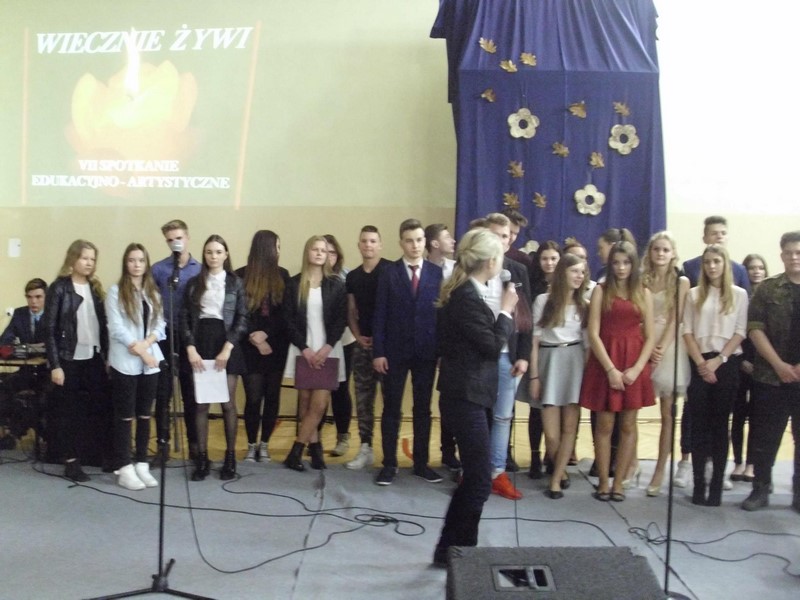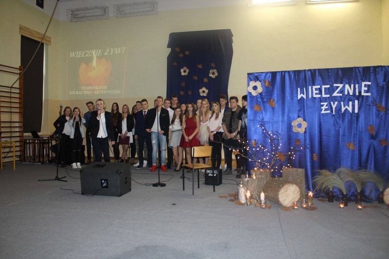 Dzięki programom edukacyjno - artystycznym „Wiecznie Żywi”, które już od siedmiu lat odbywają się w ZSA, młodzi ludzie zaznajamiają się z twórczością artystów, poznają różne teksty kultury, przez co uświadamiają sobie, że mimo ludzkich słabości i przeciwności losu, warto działać, tworzyć, być człowiekiem kreatywnym, aby pozostawić po sobie „coś" dla potomnych. Pomysłodawcą i organizatorką cyklicznych spotkań „Wiecznie Żywi” jest pani Agnieszka Kwaśniewska - Suda (nauczycielka języka polskiego). W tym roku do recytacji wiersza w języku niemieckim uczennice przygotowała p. Aneta Drążkowska. W przygotowaniu układu tanecznego dla Patrycji i jej kolegów z 1TIb, pomogła pani Ewa Schulz ( nauczycielka wychowania fizycznego). Z okazji uroczystości widzowie mogli również podziwiać prace zgłoszone do konkursu „Słowem malowane” organizowanego w ZSA przez panią Aleksandrę Jóżwiak ( nauczycielkę języka polskiego).