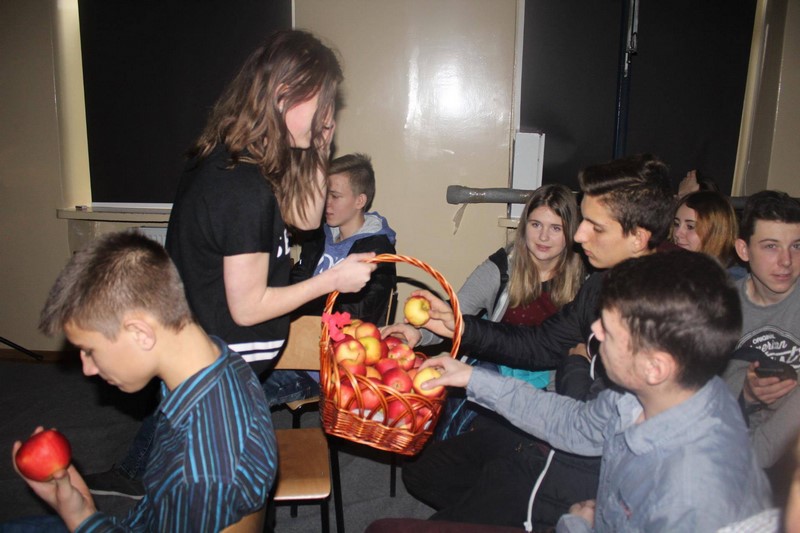 Miłym akcentem było połączenie przedsięwzięcia artystycznego z akcją „Zamiast buszka weź jabłuszka” organizowanego w ramach Światowego Dnia Rzucania Palenia. Po uroczystości „Wiecznie Żywi”, gimnazjaliści zostali poczęstowani pysznymi, zdrowymi jabłkami.