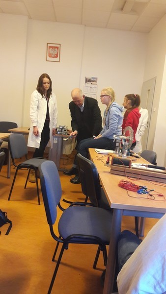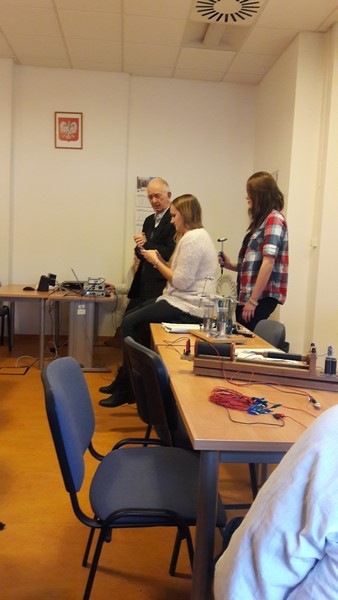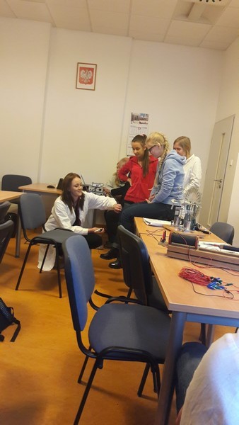 "Elektryczność w biologii". Zasady bezpiecznego korzystania z energii elektrycznej, zapoznanie z zasadami działania i obsługą aparatury do badań elektrofizjologicznych, pomiar szybkości fali tętna w oparciu o rejestrację EKG i pulsu, pomiar czasu reakcji na bodziec mechaniczny, wzrokowy i słuchowy w różnych stanach uwagi osoby badanej, czas reakcji w odruchu kolanowym, śmieszne gesty – stymulacja elektryczna nerwów palców dłoni, rejestracja aktywności elektrycznej mięśni dłoni (emg) podczas sterowanej "mózgowo" i wymuszonej elektrycznie aktywności palców dłoni.