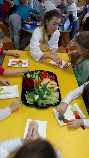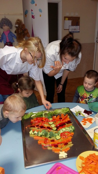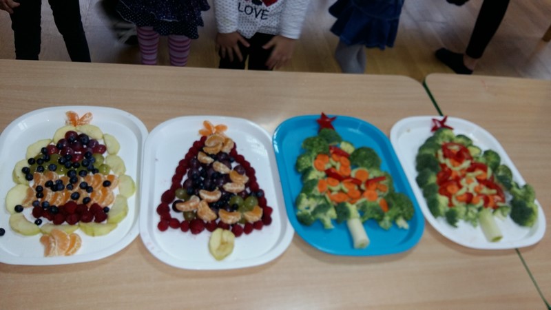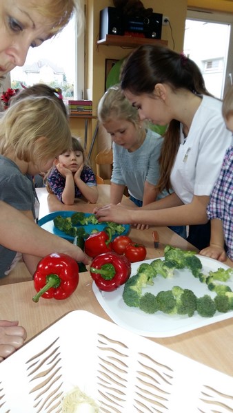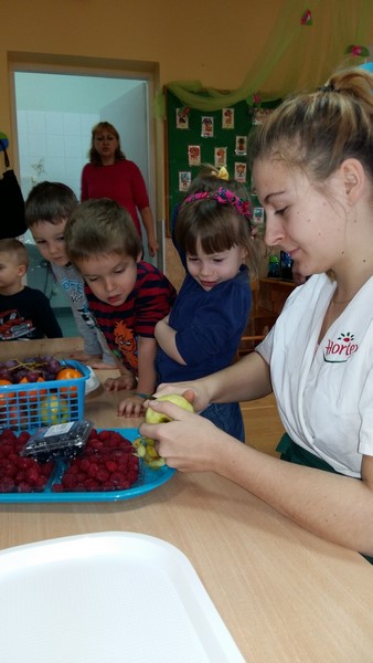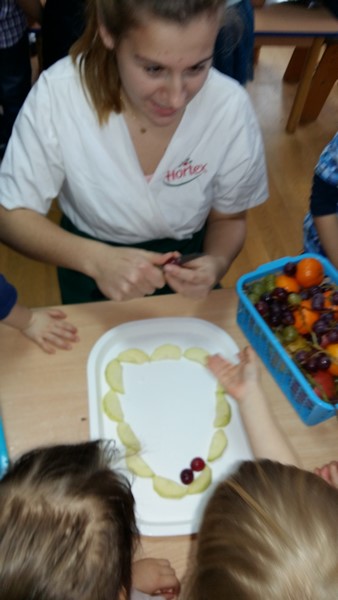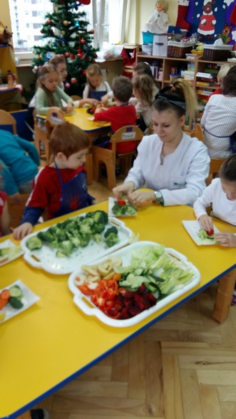 Aby umilić najmłodszym czas oczekiwania na święta, dnia 15 grudnia 2016r. uczennice z klasy 1 TUŻ i 2 TUA odwiedziły Miejskie Przedszkole Integracyjne nr 8 w Słupsku. Wspólnie z dziećmi komponowały owocowo-warzywne choinki. Poprzez zabawę dziewczęta chciały zachęcić najmłodszych do codziennego spożywania warzyw i owoców. Dzieci podczas warsztatów poznały techniki tworzenia i dekorowania choinek przy użyciu wybranych przez siebie warzyw i owoców. Wspólne zajęcia dostarczyły maluchom dużo radości i uśmiechu.
