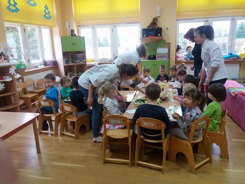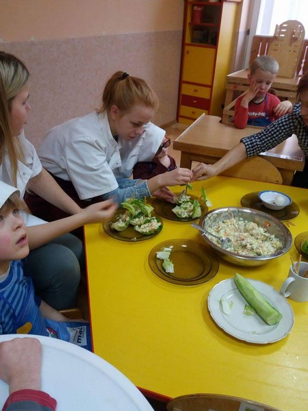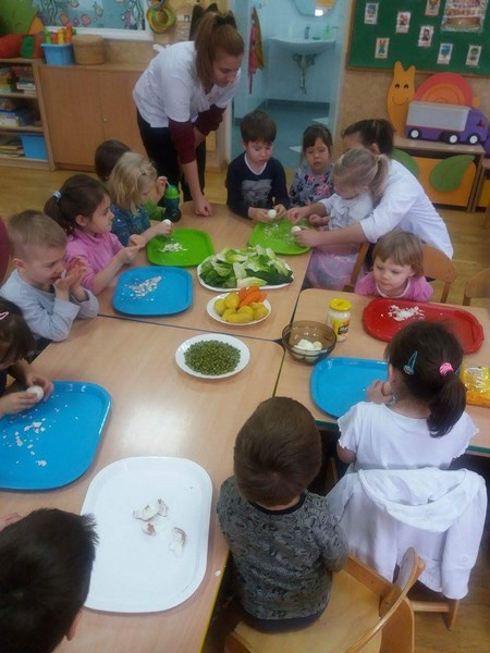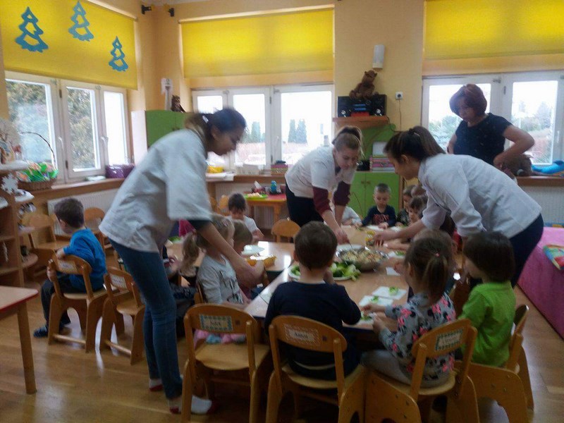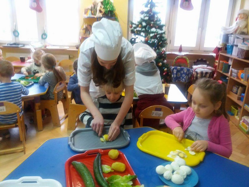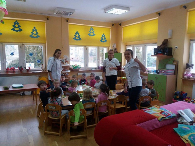 W ramach współpracy z Miejskim Przedszkolem Integracyjnym nr 8 w Słupsku realizowany jest projekt „Zdrowe Drugie Śniadanie”. 10 stycznia 2017r. dziewczęta ze Szkolnego Klubu Wolontariusza ( z klasy 1 TUŻ i 2 TUa) poprowadziły, już po raz trzeci, zajęcia z zakresu żywienia dla dzieci. Tym razem postanowiły one zachęcić najmłodszych do jedzenia warzyw proponując wspólne wykonanie jarzynowych żaglówek. Okazało się, że dzieci z wielkim entuzjazmem zabrały się do realizacji tego pomysłu. Warzywne kompozycje bardzo je zaciekawiły i zainspirowały do twórczej pracy. Wspólne tworzenie okazało się bardzo wesołą i zdrową zabawą.