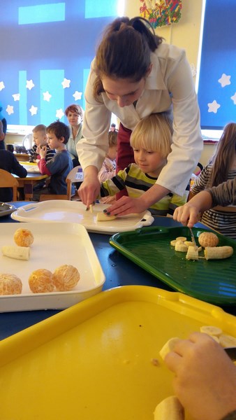 Działania miały na celu kształcenie u najmłodszych samodzielności, rozwijanie kreatywności, wyobraźni oraz dbałości o higienę podczas sporządzania posiłków. Wspólna praca dała dużo radości wszystkim dzieciom oraz wywołała na ich twarzach piękne uśmiechy.