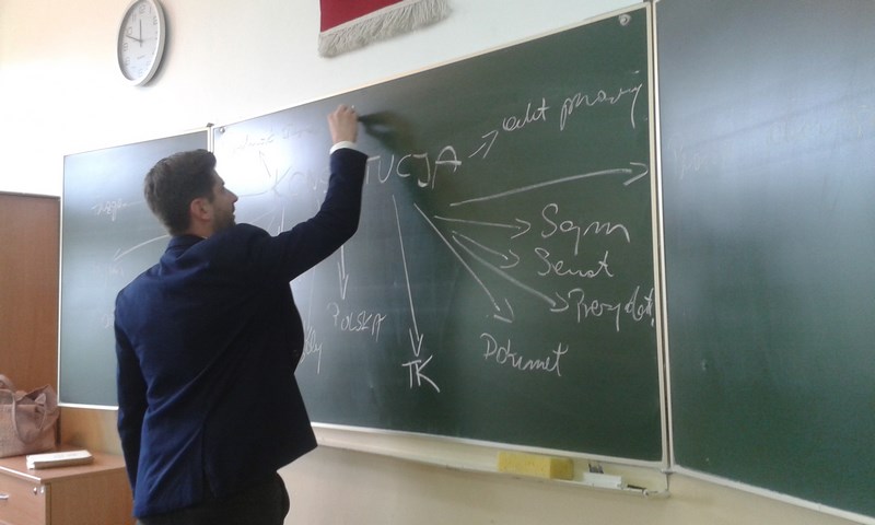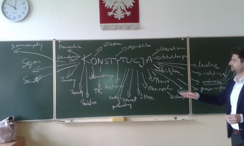 Uczniowie klas I TA, I TG, I TU oraz II TA uczestniczyli w zajęciach prowadzonych przez doświadczonych prawników: p. Danutę Wawrowską, p. Krzysztofa Śmiszka oraz p. Bartosza Rumińskiego. Serdecznie dziękujemy za niezwykle interesujące spotkanie. W przystępny i interesujący sposób pokazano nam, że problematyka konstytucyjna ma bezpośredni wpływ na codzienne życie każdego z nas. Mamy nadzieję, że zobaczymy się w następnej edycji projektu.