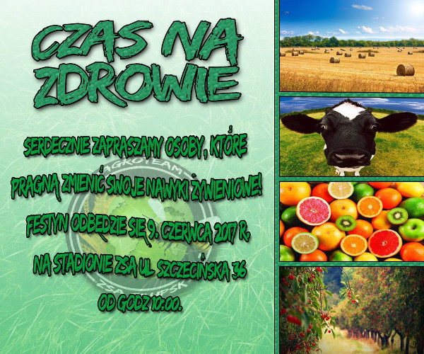 Dnia 9 czerwca o godzinie 10 rozpocznie się w naszej szkole festyn o nazwie Czas na zdrowie. Przygotowuje go 10 osobowa grupa uczniów o nazwie AGRO TEAM. Podczas festynu odbędą się m.in zawody sportowe, wspólny taniec zumby, prelekcje o zdrowiu, degustacja dań wykonanych przez naszych uczniów z ekologicznej żywności.