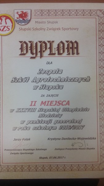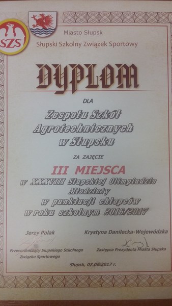 Miło nam poinformować, iż w kategorii chłopców Zespół Szkół Agrotechnicznych w Słupsku zajął w tym roku - III miejsce!
