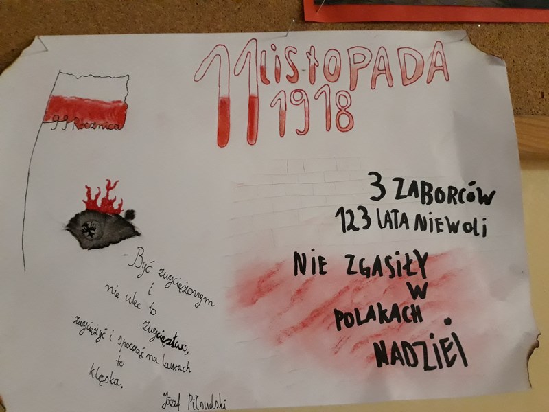 Chcąc uświetnić rocznicę odzyskania przez Polskę niepodległości uczniowie klas I technikum wykonali plakaty dotyczące ww. faktu historycznego, które rozwiesili w obu budynkach szkoły.