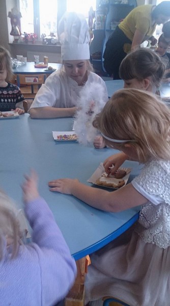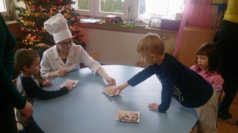 15 grudnia 2017r. w Miejskim Przedszkolu Integracyjnym nr 8 w Słupsku odbyły się z naszym udziałem warsztaty kulinarne dla przedszkolaków pod hasłem „Świąteczne pierniczki”. Celem spotkania było ukazanie dzieciom piękna świąt Bożego Narodzenia oraz zapoznanie z tradycjami i zwyczajami świątecznymi. Na tę okoliczność uczniowie klasy 2 ZK (opiekun p.Bożena Skrzypek) upiekli różnokształtne pierniki, natomiast uczennice z klasy 1 TUŻ (wspólnie z pracownikami przedszkola i przedstawicielami Uniwersytetu Trzeciego Wieku w Słupsku) pomagały dzieciom w lukrowaniu i dekorowaniu pierniczków. Dzieci z wielkim zapałem i zaangażowaniem ozdabiały ciasteczka różnokolorowymi lukrami, barwnymi posypkami, cukrowymi pisakami i kolorowymi cukiereczkami. Każdy pierniczek był wyjątkowy i niepowtarzalny.