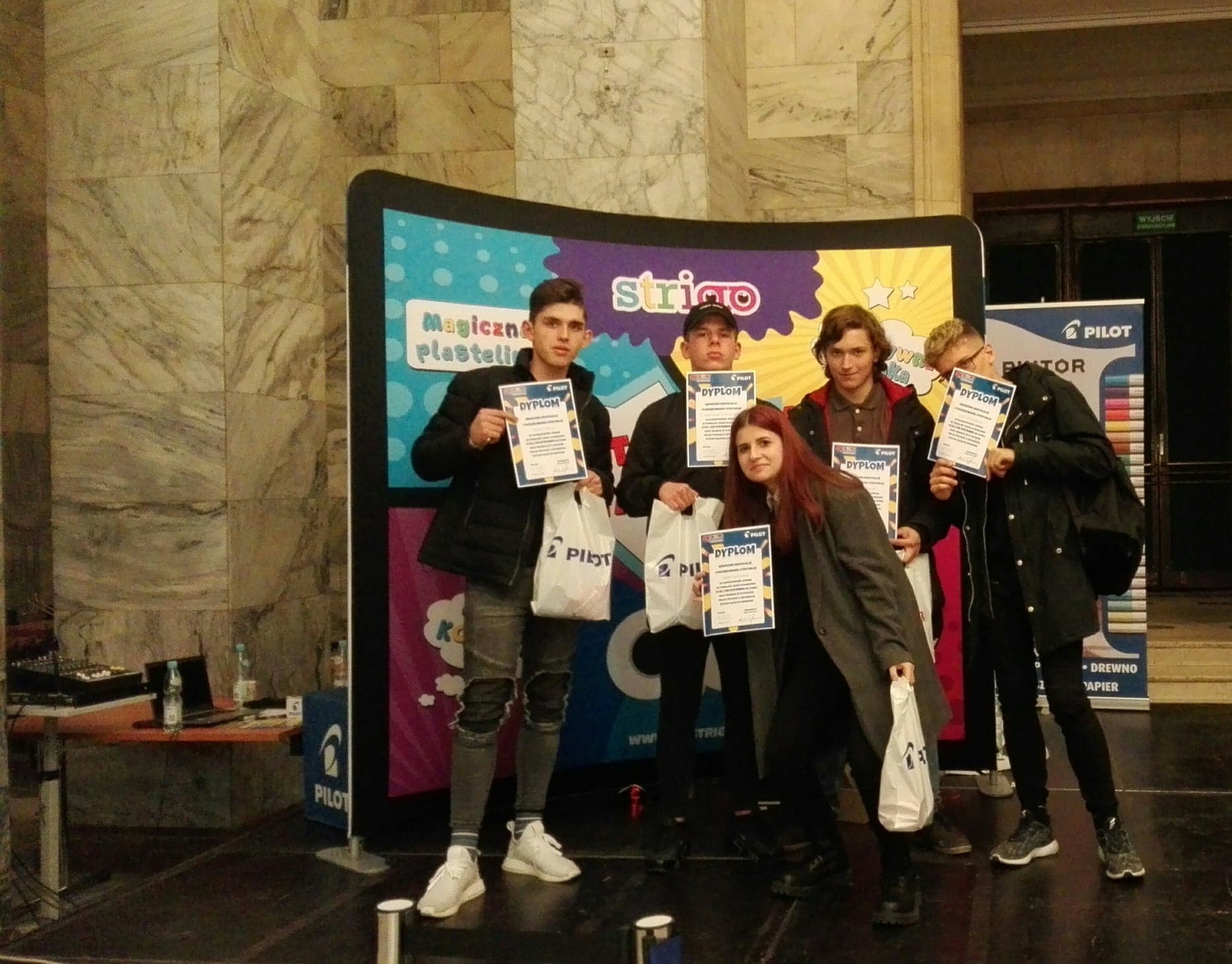 Nasza szkoła zajęła 2. miejsce w etapie on-line ogólnopolskiej akcji pod nazwą „O! Błędne Dyktando” organizowanej pod patronatem Ministra Edukacji Narodowej. Wzięło w niej udział 6597 uczestników z 2372 szkół z całej Polski. 500 najlepszych, młodych znawców ortografii zakwalifikowało się do Wielkiego Finału, który odbył się 27 października w Pałacu Kultury i Nauki w Warszawie. Naszą szkołę reprezentowali: Agata Laskowska (kl. 3 TEG), Mariusz Roguski (kl. 2 TKA), Julian Dobrosielski, Bartłomiej Komisarczuk, Wiktor Sobczak (kl. 3TIb). W finale konkursu napisali niezwykle trudne dyktando. W ich kategorii wiekowej wzięło udział 209 uczestników. Najlepszy wynik z naszej szkoły odnotował Mariusz Roguski. Tylko jeden błąd zadecydował o tym, że nie znalazł się on wśród dziesięciu nagrodzonych.