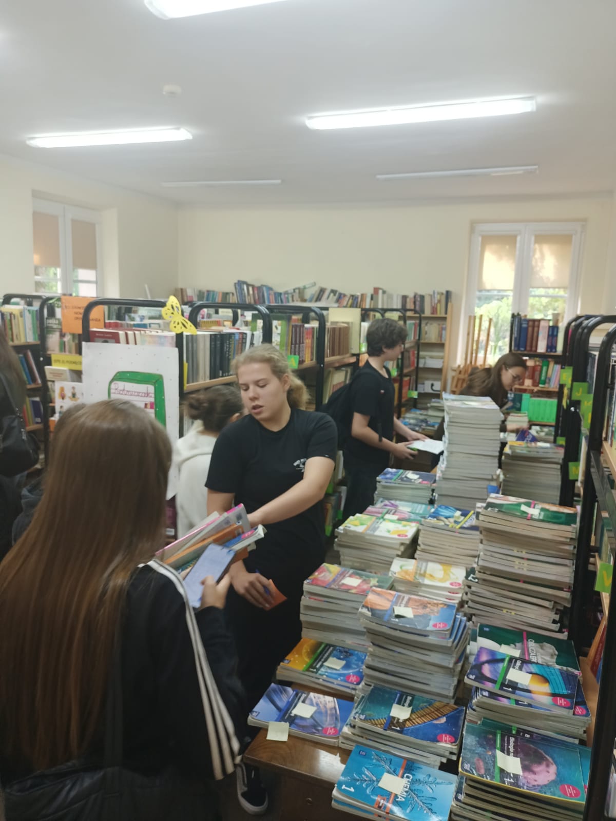 16 września 2025r. w bibliotece szkolnej odbył się kiermasz używanych podręczników szkolnych. Jest to impreza organizowana co roku w naszej szkole i cieszy się ogromnym zainteresowaniem naszych uczniów i ich rodziców. Przygotowaniem i prowadzeniem kiermaszu zajmowali się nauczyciele-bibliotekarze i wolontariusze. Kiermasz jest doskonałą okazją, aby młodzież zaopatrzyła się w tańsze podręczniki. Cieszymy się, że możemy wyjść naprzeciw oczekiwaniom rodziców i uczniów.