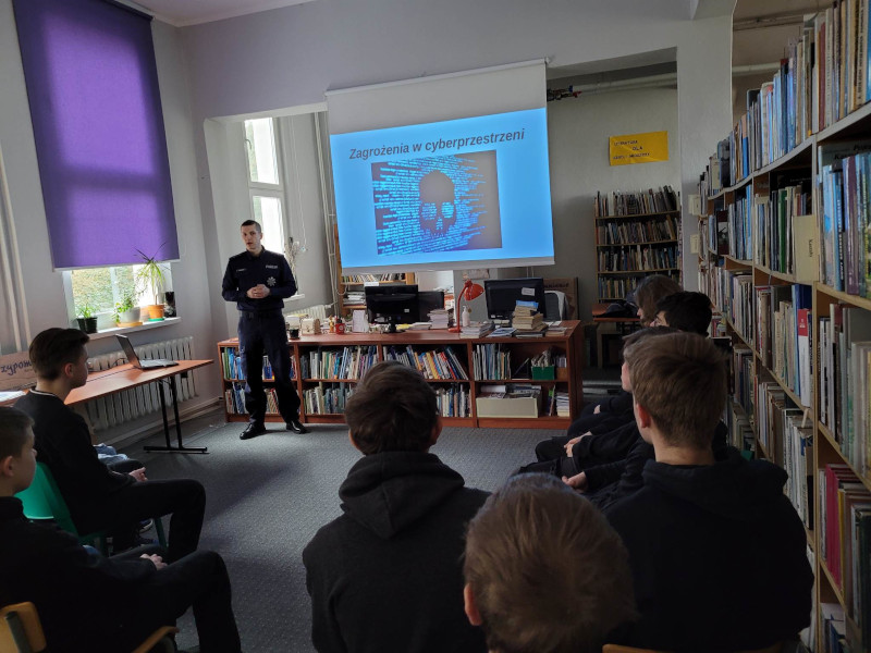 2 marca uczniowie klasy 1 technik programista brali udział w spotkaniu dotyczącym bezpieczeństwa w sieci internetowej, które odbyło się w Filii nr 5 w Miejskiej Bibliotece Publicznej w Słupsku. Podczas wykładu, który poprowadził przedstawiciel policji mł. aspirant Arkadiusz Matuszyn, młodzież dowiedziała się o najbardziej popularnych zagrożeniach w sieci internetowej.