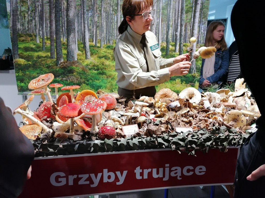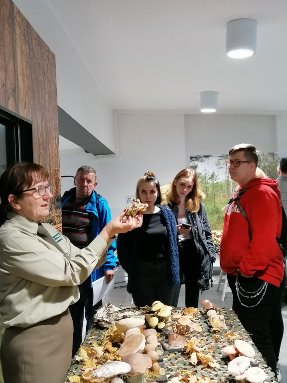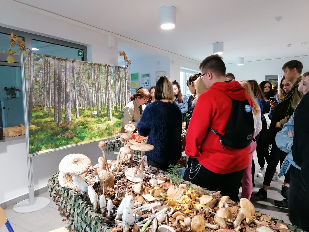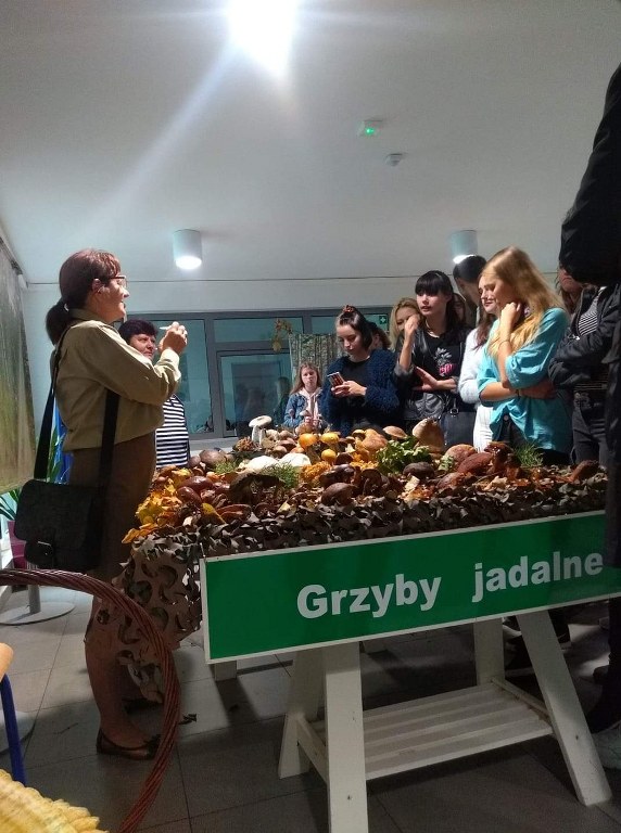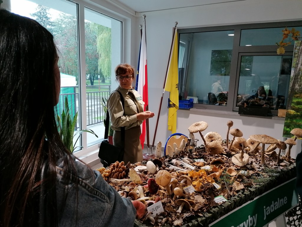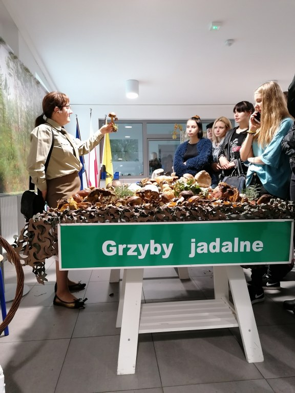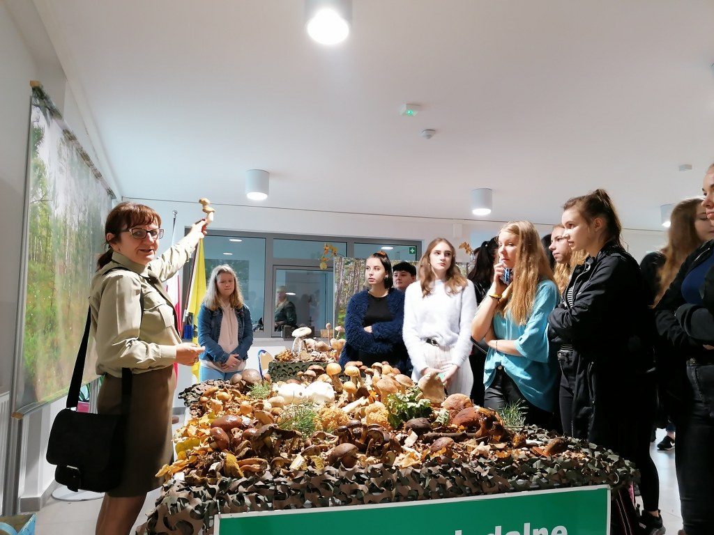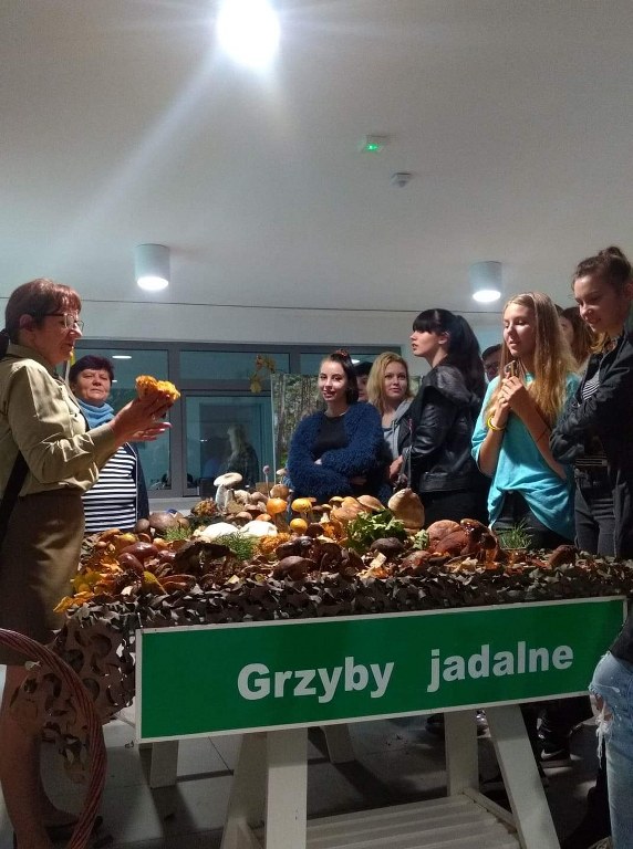 Pogadanki prowadzili pracownicy Lasów Państwowych oraz pracownicy Pomorskiego Zespołu Parków Krajobrazowych - nas oprowadzała bardzo sympatyczna Pani Anna Mariola Kasprzak - starszy specjalista ds.edukacji ekologicznej - Dziękujemy! Zwróciła nam m. in. uwagę jak prawidłowo przygotować się do grzybobrania i nie popełnić błędu przy zbiorze. Mieliśmy okazję obejrzeć ciekawy film, który pokazywał życie grzybów z innej perspektywy. Na ostatnim stoisku mogliśmy zobaczyć grzyby nadrzewne i porosty oraz poznać ich znaczenie w świecie przyrody. Ekspozycja grzybów i runa leśnego stanowiła dla nas uczniów doskonałą lekcję biologii.