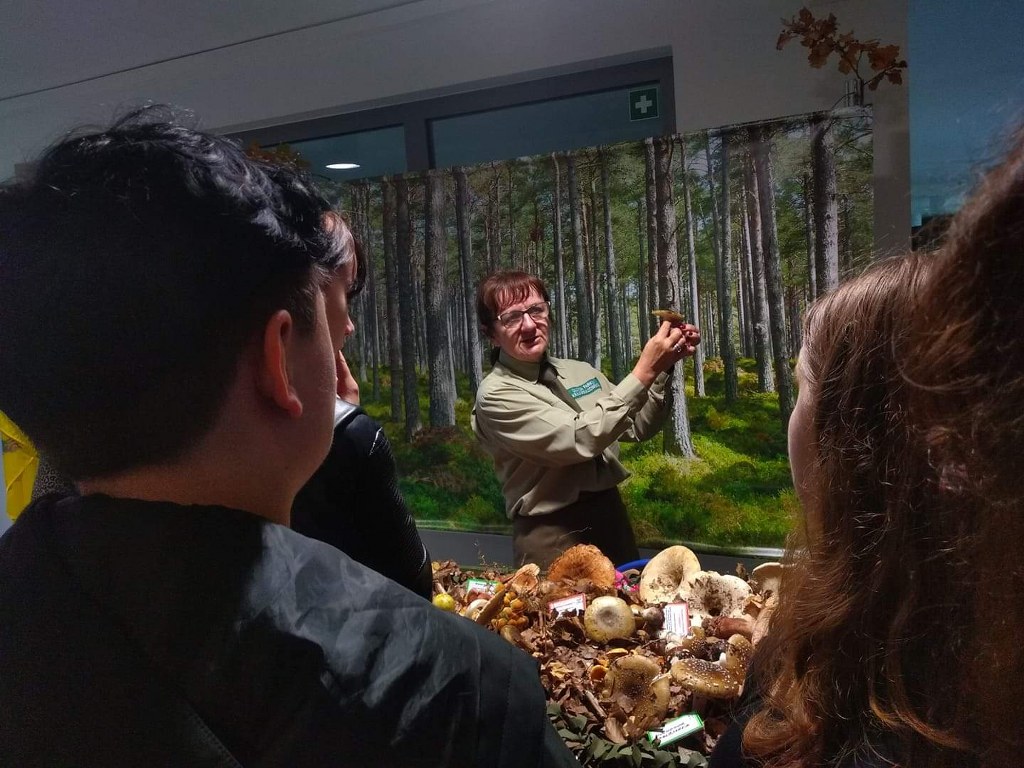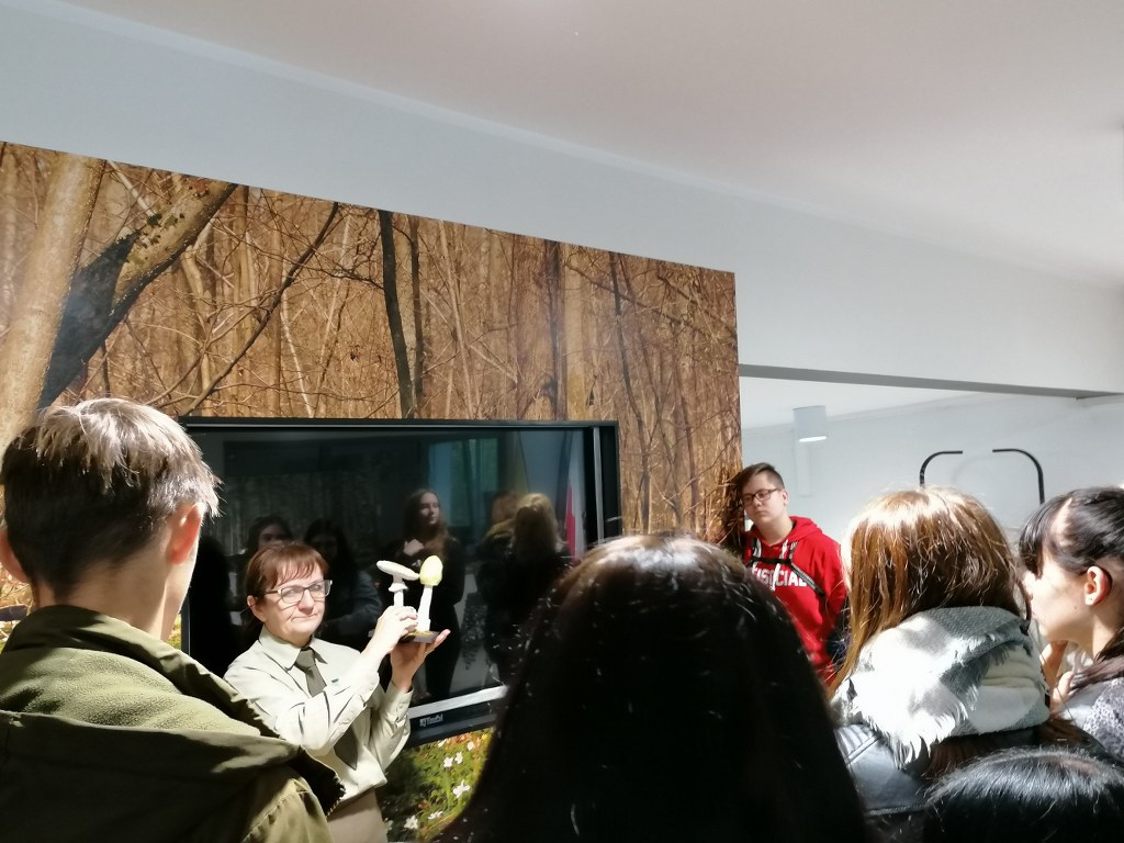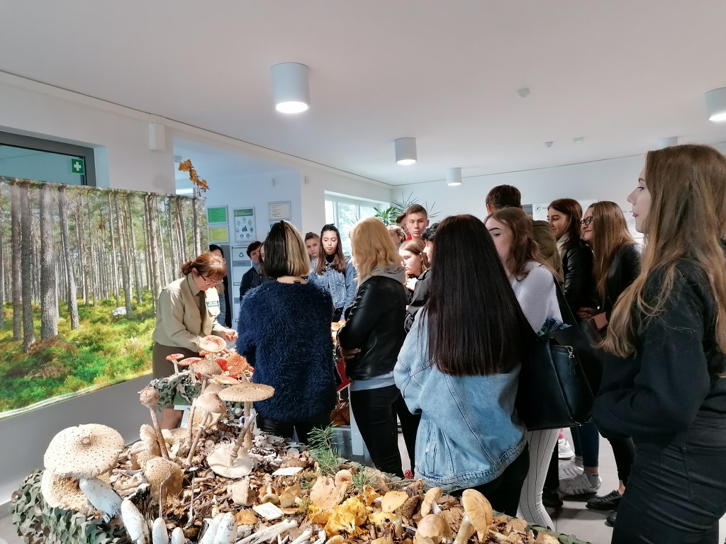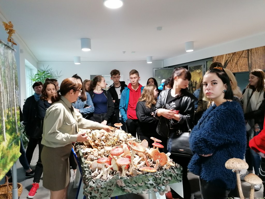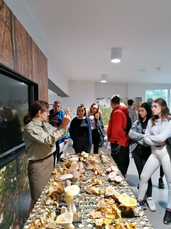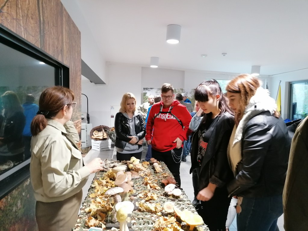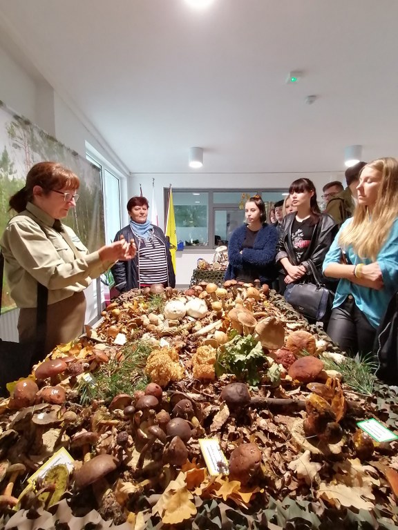 Pogadanki prowadzili pracownicy Lasów Państwowych oraz pracownicy Pomorskiego Zespołu Parków Krajobrazowych - nas oprowadzała bardzo sympatyczna Pani Anna Mariola Kasprzak - starszy specjalista ds.edukacji ekologicznej - Dziękujemy! Zwróciła nam m. in. uwagę jak prawidłowo przygotować się do grzybobrania i nie popełnić błędu przy zbiorze. Mieliśmy okazję obejrzeć ciekawy film, który pokazywał życie grzybów z innej perspektywy. Na ostatnim stoisku mogliśmy zobaczyć grzyby nadrzewne i porosty oraz poznać ich znaczenie w świecie przyrody. Ekspozycja grzybów i runa leśnego stanowiła dla nas uczniów doskonałą lekcję biologii.