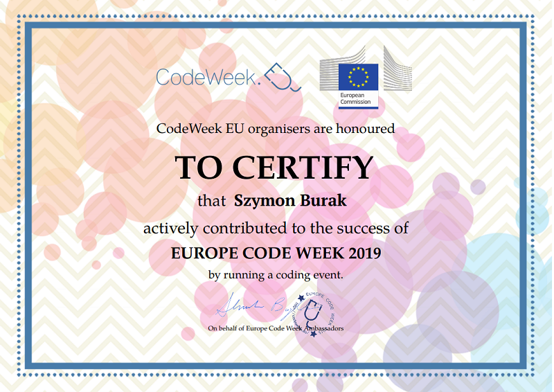 Code Week to społeczna inicjatywa, w ramach której europejskie państwa „ścigają się” w liczbie zorganizowanych wydarzeń związanych z programowaniem. Akcja co roku organizowana jest na terenie całej Europy i dedykowana wszystkim, którzy chcą rozpocząć lub kontynuować przygodę z programowaniem.