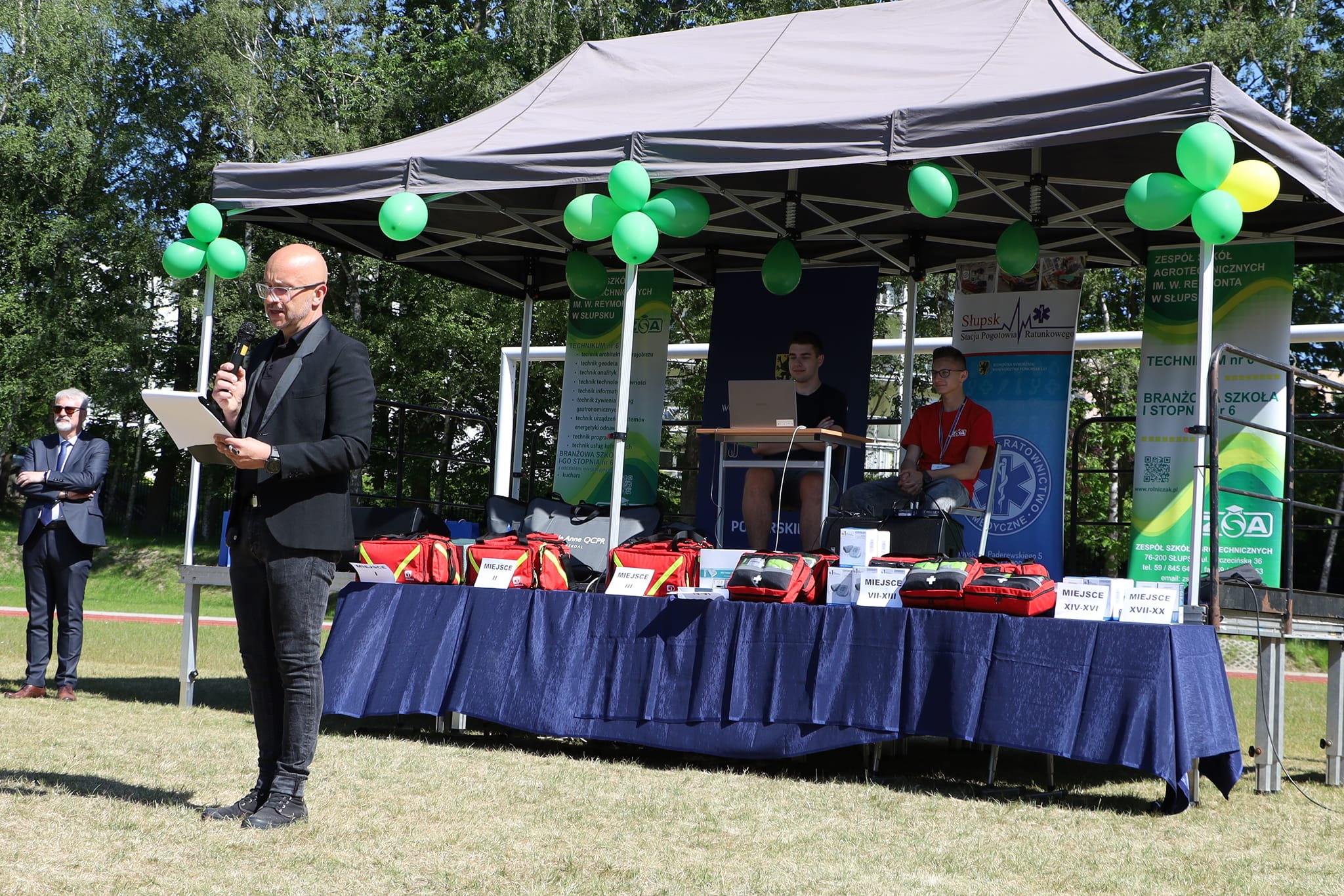 Ponad 20 szkół z powiatu słupskiego i miasta Słupska wzięło udział w finałowych konkurencjach Powiatowej Olimpiady Pierwszej Pomocy dla młodzieży szkolnej, zorganizowanych na terenie naszej szkoły. Towarzyszące wydarzenia to m.in. pokazy ratownictwa medycznego, technicznego i wysokościowego, sprzętu wojskowego i medycznego służb mundurowych oraz prezentacje instytucji zdrowia publicznego.