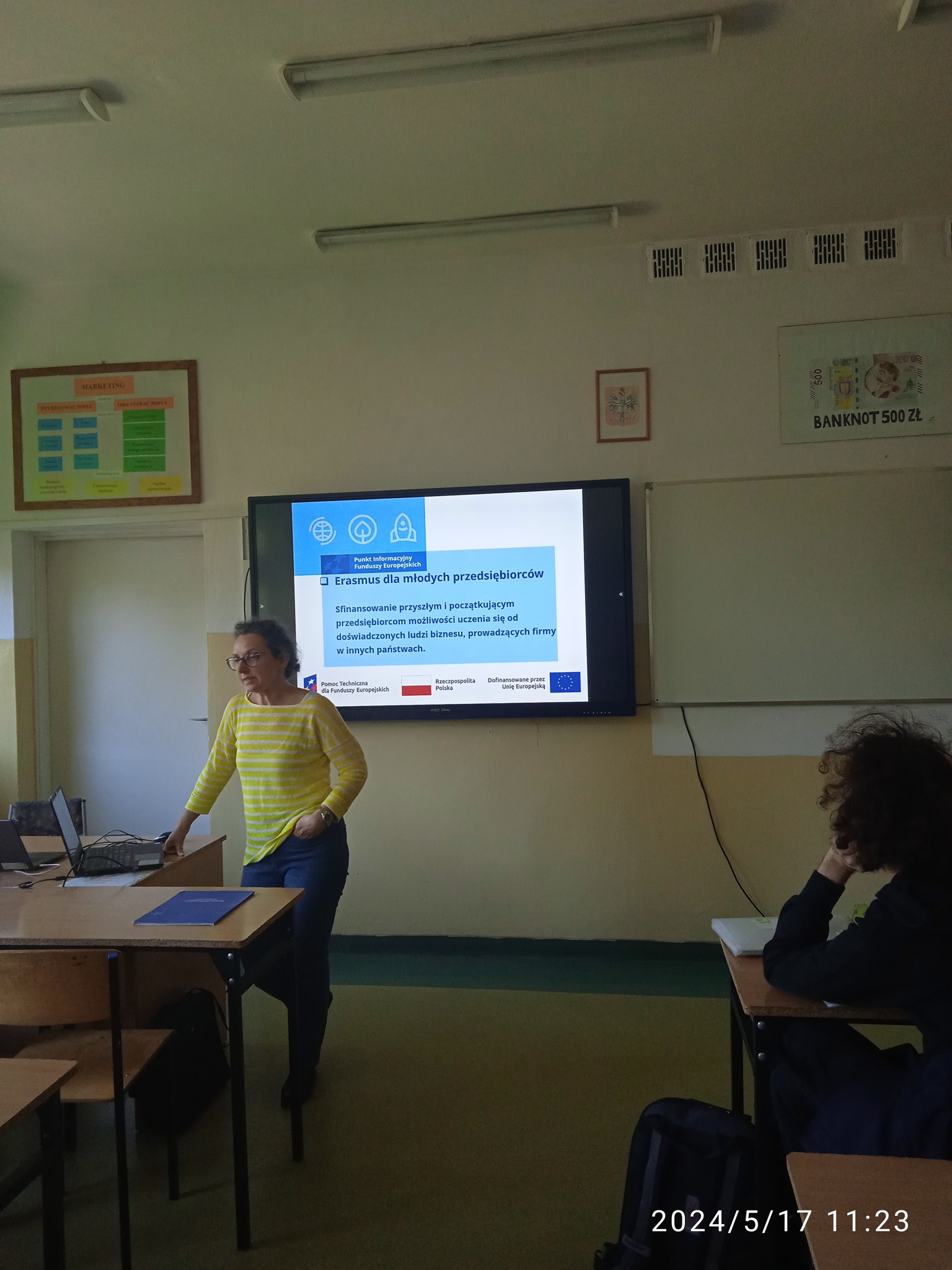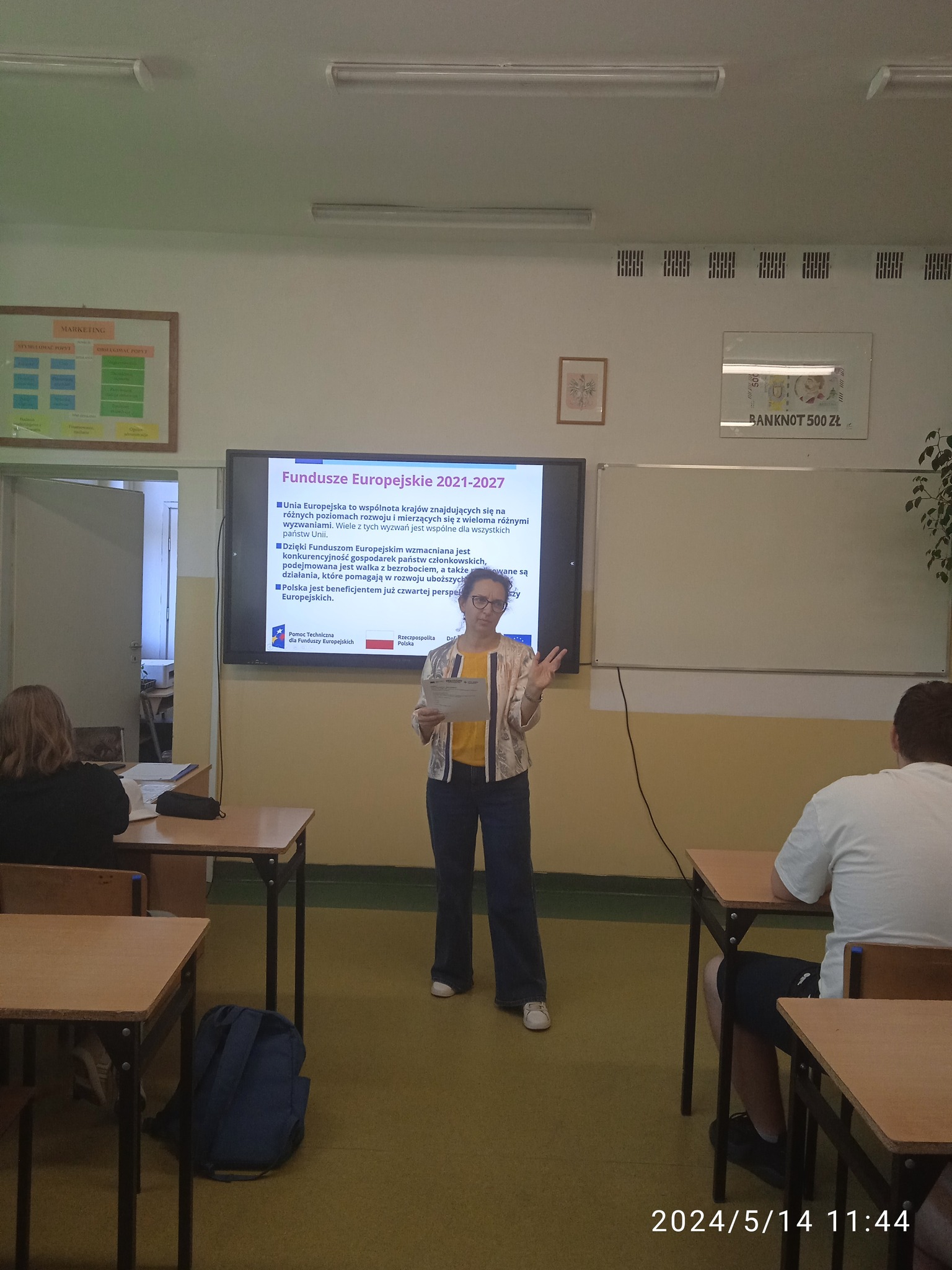 W dniach od 14.05 do 17.05.2024 oraz 27.05.2024 w Zespole Szkół Agrotechnicznych mieliśmy zaszczyt gościć Panią Olimpię Klamann, doradcę funduszy europejskich z Lokalnego Punktu Informacyjnego Funduszy Europejskich w Słupsku. Przeprowadziła ona prelekcje na temat różnych źródeł pozyskiwania funduszy na rozpoczęcie i prowadzenie działalności gospodarczej oraz poinformowała jak skutecznie korzystać z Funduszy Europejskich w perspektywie 2021-2027.
