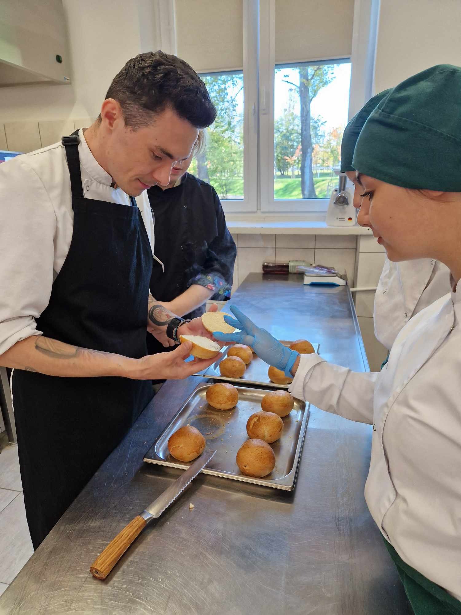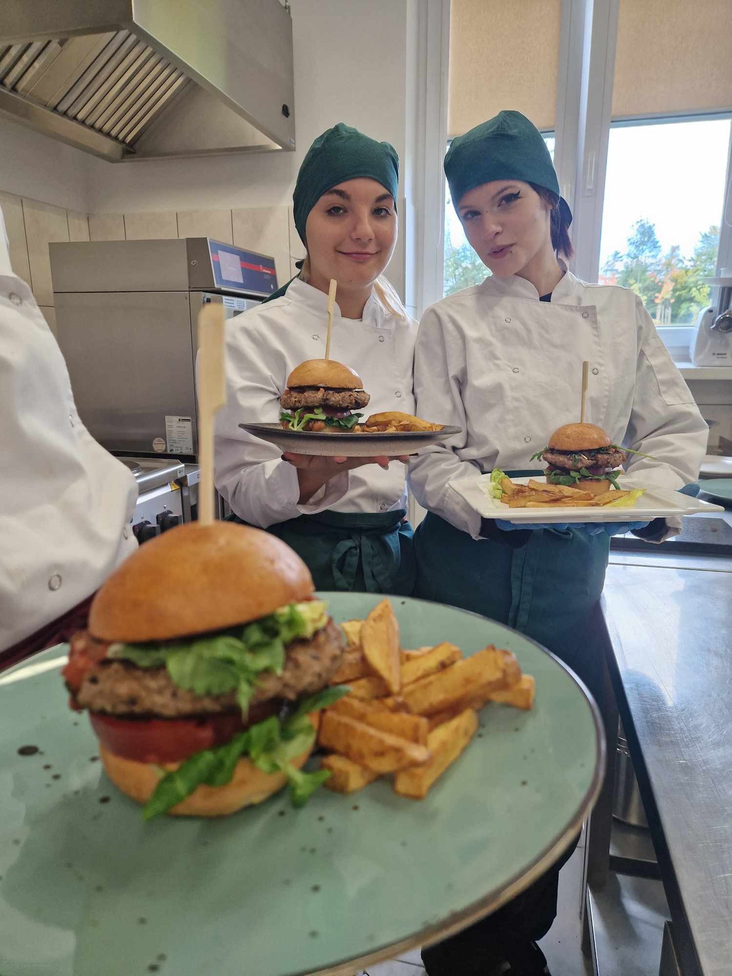 Klasyk kuchni amerykańskiej gościł w naszej pracowni gastronomicznej. BURGERY - to coś bardziej wyrafinowanego niż amerykańska kanapka. Szkolenie dla klas gastronomicznych przeprowadził szef kuchni restauracji "HOKUS- POKUS" Patryk Początko wraz ze starszym kucharzem Mateuszem Głowińskim- który jest absolwentem naszej szkoły. Kulinarne umiejętności szefa kuchni pomogą na pewno zainspirować swoimi pomysłami młodych kucharzy i techników żywienia. Liczymy na to, że zdobyte doświadczenie przyczyni się do rozwoju młodych Masterchef.