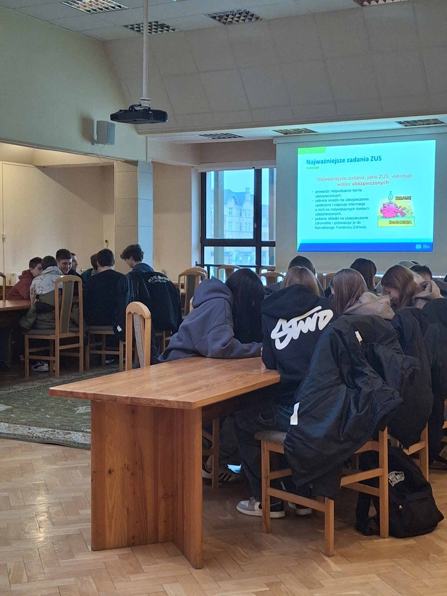 Warsztaty odbyły się 21 stycznia 2025 roku (piątek) na których uczestniczyli uczniowie klas pierwszych kierunków informatyki, architektury krajobrazu oraz żywienia i usług gastronomicznych. Uczestnicy spotkania mieli okazję poszerzyć i uzupełnić wiedzę z zakresu ubezpieczeń społecznych i na koniec pobytu uzyskać odpowiedzi na nurtujące ich pytania.