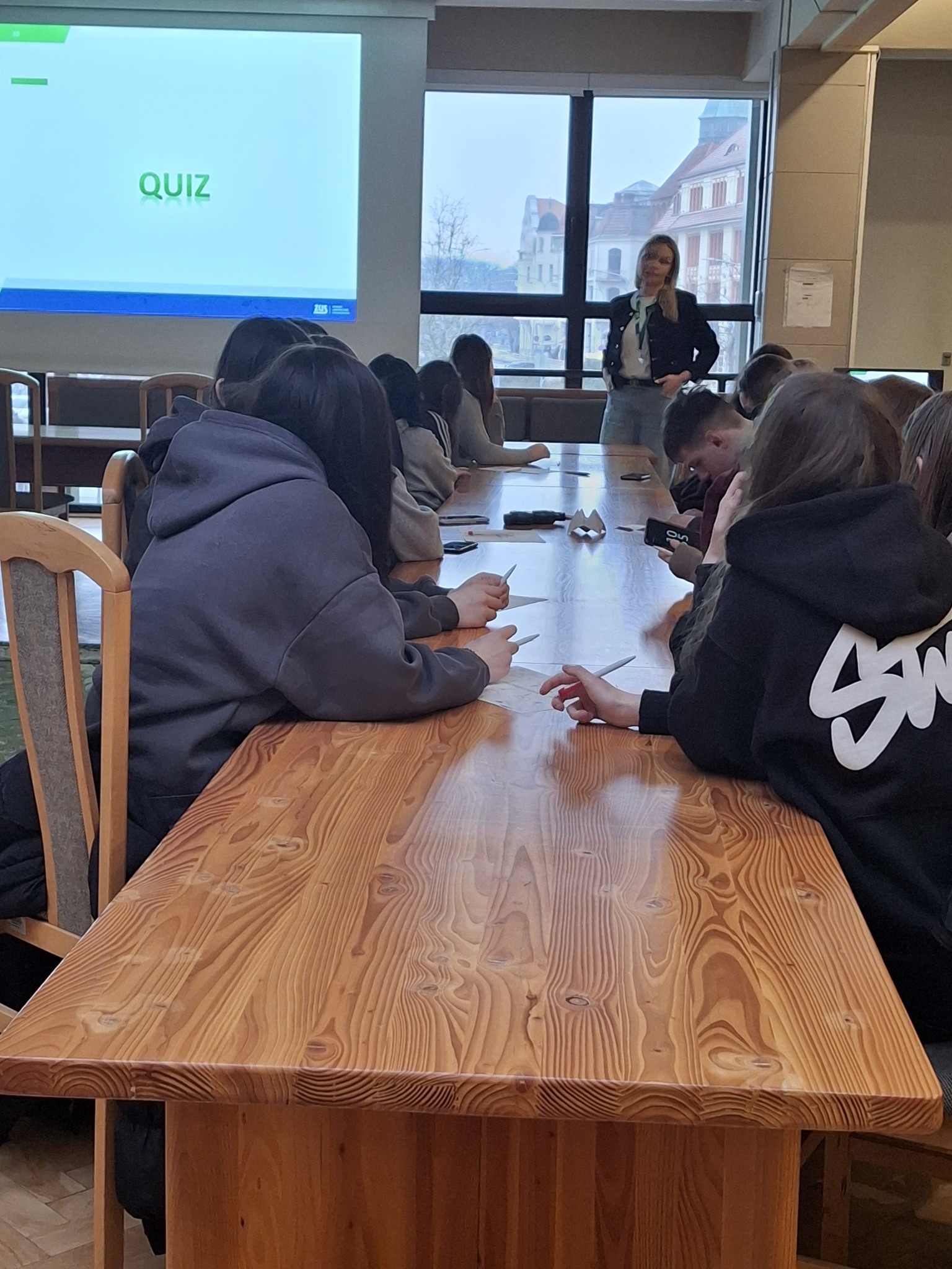Podsumowanie wiadomości oraz ustalenie wniosków odbyło się w miłej atmosferze. Celem spotkania było przekazanie uczestnikom praktycznej wiedzy o systemie ubezpieczeń społecznych obowiązującym w Polsce. Informacje o ubezpieczeniach społecznych są niezbędne młodym ludziom, aby mogli w przyszłości wykorzystać zdobytą wiedzę w życiu osobistym i zawodowym.