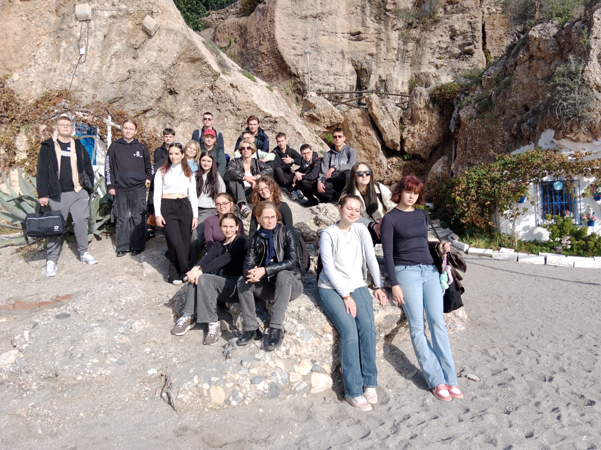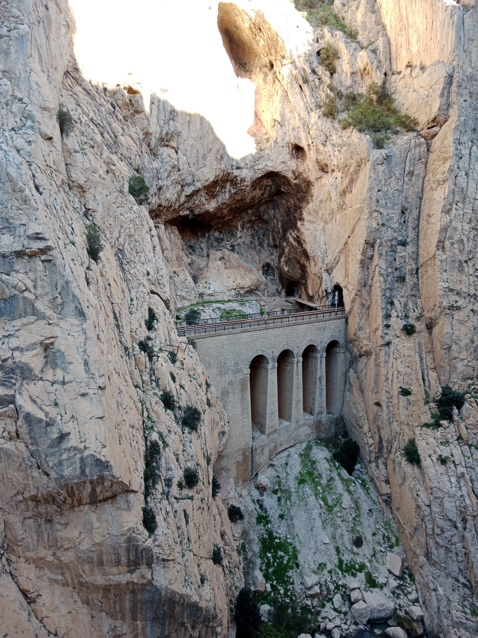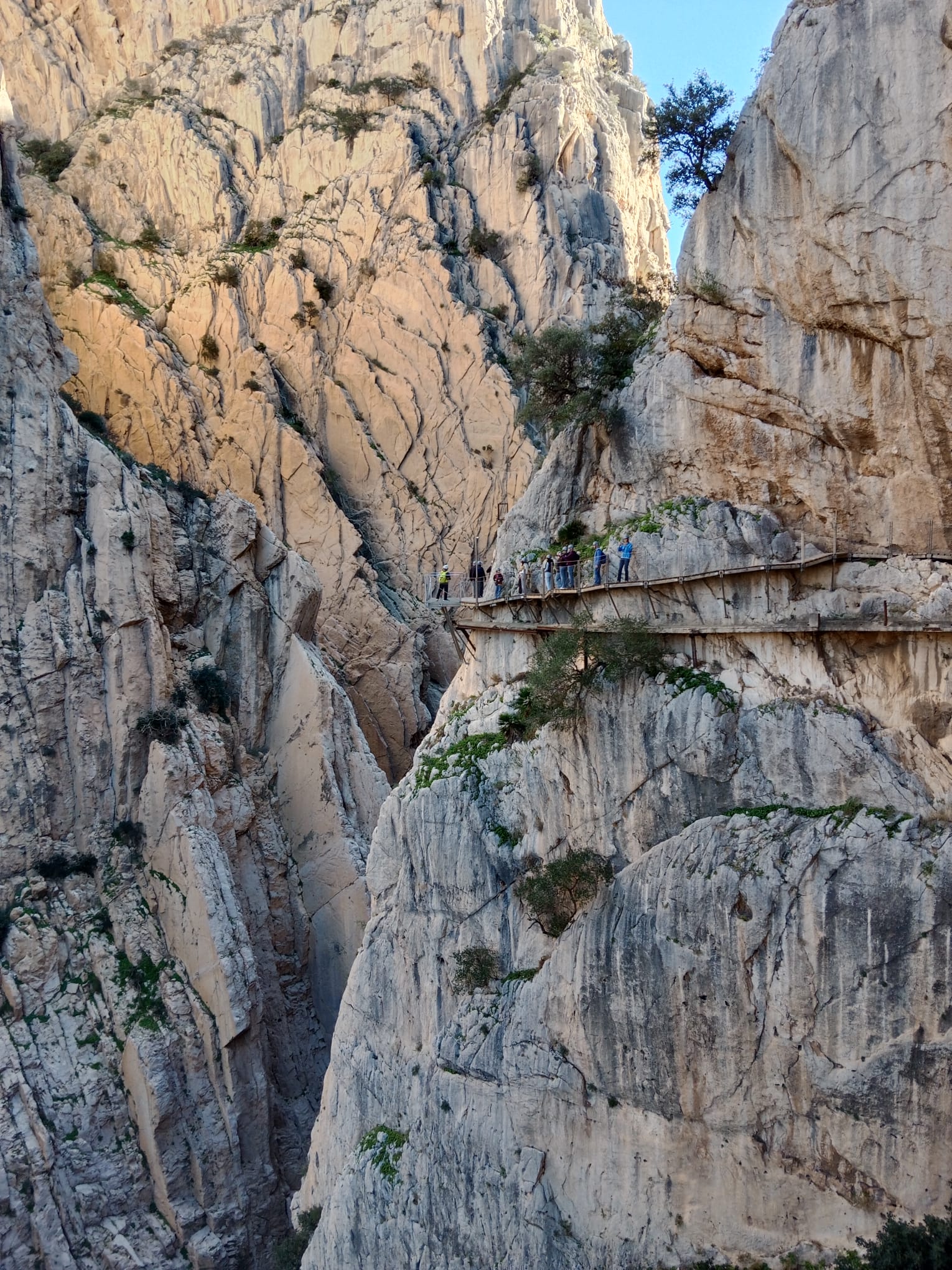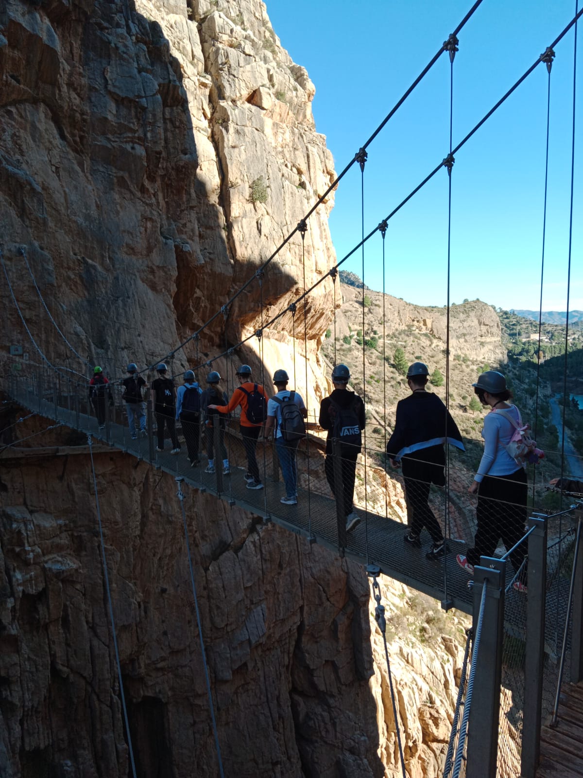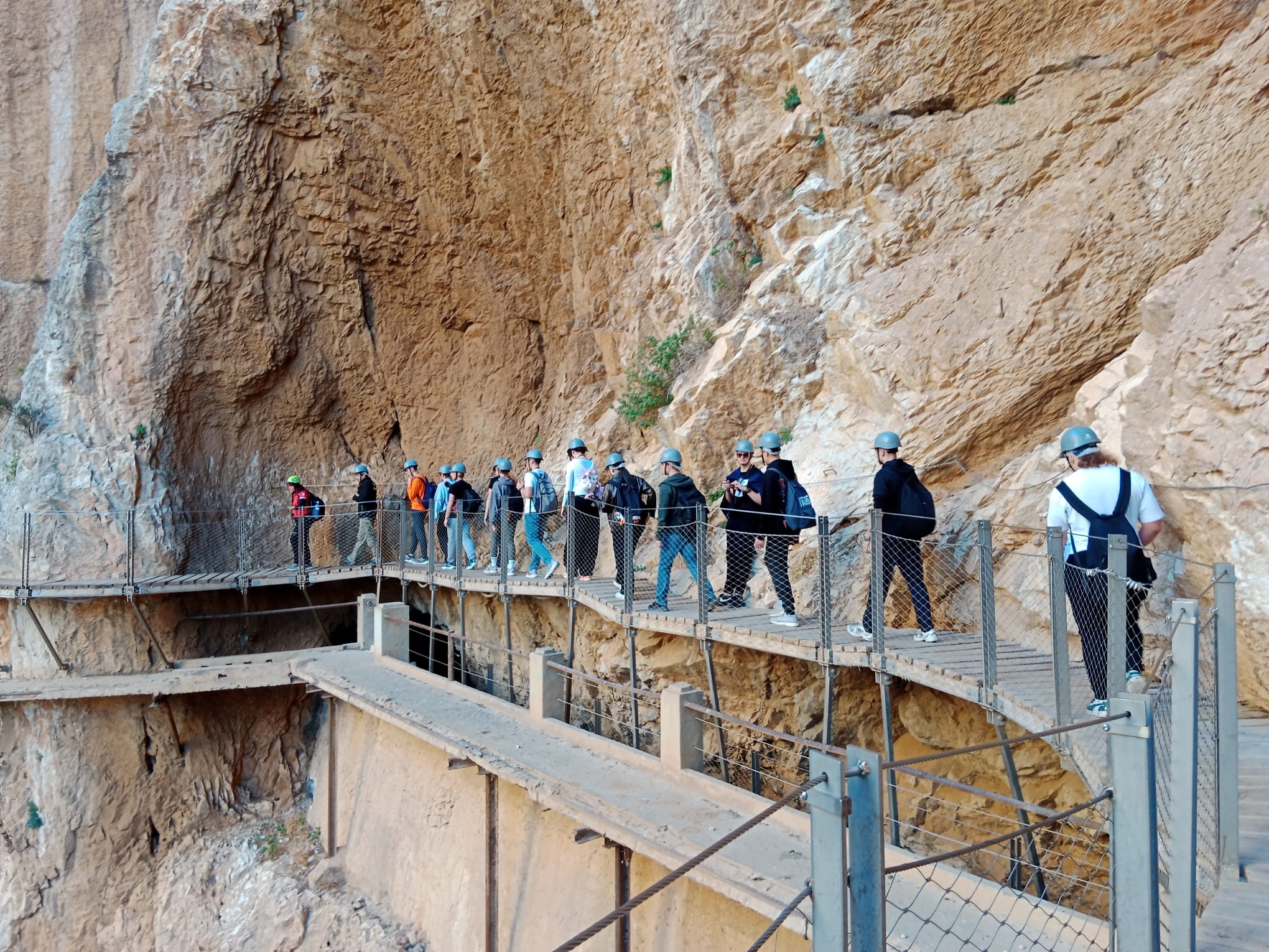 7 grudnia udaliśmy się na wycieczkę do parku narodowego Desfiladero de los Gaitanes, żeby zobaczyć i przespacerować się jedną z największych atrakcji turystycznych Hiszpanii Caminito del Rey (Ścieżka Króla). Trasa w dużej części ciągnie się wzdłuż pionowych ścian głębokiego na 100 metrów wąwozu, a kończy wiszącym nad przepaścią mostem. Przy szlaku w kilku miejscach spotkaliśmy przyzwyczajone do widoku turystów kozice. Szczęśliwie dotarliśmy w komplecie do końca szlaku, ale niestety nie obyło się bez strat w sprzęcie
