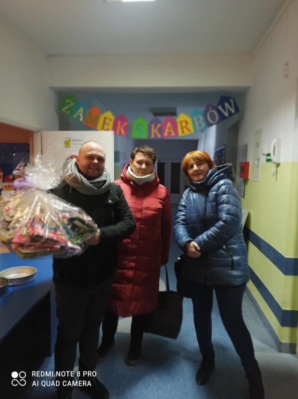Wolontariusze – Mikołaje ze Szkolnego Klubu Wolontariatu ,,Panda" przybyli na kiermasz świąteczny do Miejskiego Przedszkola Integracyjnego nr 8 w Słupsku. Dyrektorowi placówki p. Tomaszowi Dobrowolskiemu wręczyli samodzielnie wykonane upominki dla najmłodszych – książeczki sensoryczne z wierszami J. Tuwima i J. Brzechwy. Zaśpiewali również kolędy, umilające świąteczny czas uczestnikom przedszkolnego kiermaszu.