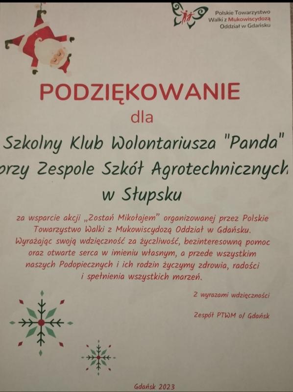 W grudniu SKW "Panda" brał udział w akcji "Zostań Mikołajem" organizowanej przed Polskie Towarzystwo Walki z Mukowiscydozą Oddział w Gdańsku. Zbieraliśmy pluszaki, kolorowanki i inne przedmioty przynoszące młodszym radość. Dziękujemy każdemu w zaangażowanie!