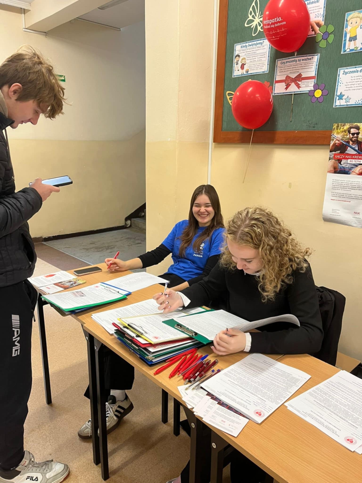 4 października 2024 r. w naszej szkole odbyła się akcja honorowego krwiodawstwa zorganizowana we współpracy z Regionalnym Centrum Krwiodawstwa i Krwiolecznictwa w Słupsku. W wydarzenie zaangażowali się wolontariusze, którzy pomagali w organizacji i informowali uczniów o przebiegu akcji oraz wspierali krwiodawców.