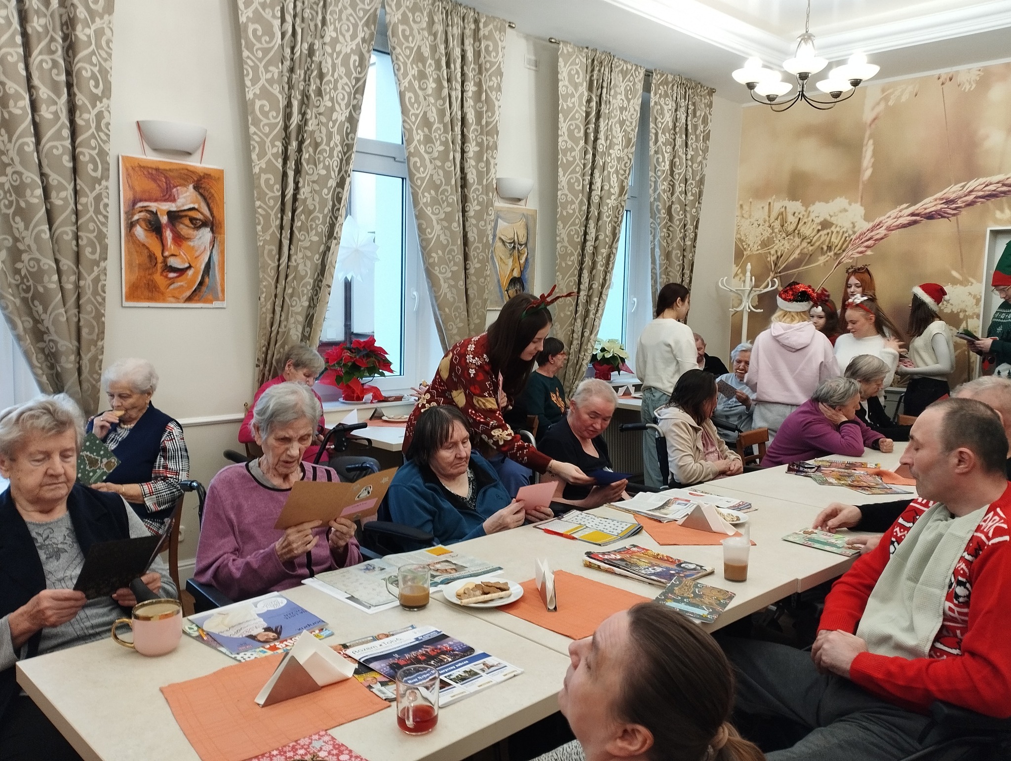 Było naprawdę serdecznie i wzruszająco – zanieśliśmy im własnoręcznie wykonane kartki świąteczne, podzieliliśmy się ciastkami i wspólnie śpiewaliśmy kolędy.