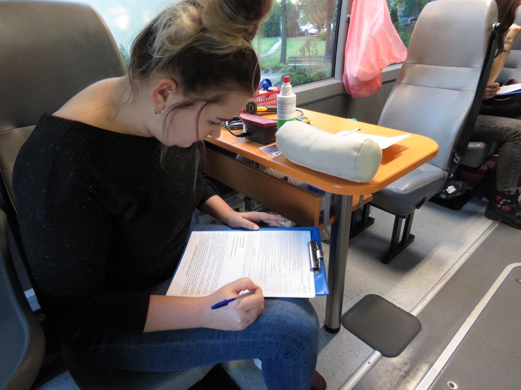 W środę 17 października 2018r.,zgodnie z wieloletnią tradycją, odbyła się w szkole akcja honorowego oddawania krwi, w której wzięli udział zarówno uczniowie jak i nauczyciele szkoły. Oddawanie krwi odbyło się w godzinach od 8:00 do 14 :00. W tej szlachetnej akcji wzięło udział 54 uczniów i 3 nauczycieli. Oddawanie krwi odbyło się w mobilnym krwiobusie na terenie szkoły. Łącznie krew oddało 39 osób w ilości 17 litrów 110 ml krwi. Akcja poprzedzona była spotkaniami edukacyjnymi z zakresu krwiodawstwa przeprowadzonymi przez pielęgniarkę szkolną i wolontariuszy, które były skierowane do uczniów klas trzecich i czwartych.