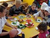 W ramach projektu "Zdrowe Drugie Śniadanie" 15 marca 2017r. odbyły się warsztaty kulinarne dla dzieci z Miejskiego Przedszkola Integracyjnego nr 8 w Słupsku, które poprowadziły uczennice z klasy 1 TUŻ. Wolontariuszki wspólnie z paniami z Uniwersytetu Trzeciego Wieku i nauczycielami z przedszkola tworzyły z dziećmi z warzyw różne kompozycje kwiatowe. Ze zgromadzonych zdrowych produktów dzieci wyczarowywały bardzo ciekawe i pomysłowe przekąski. Najmilszą chwilą warsztatów była wspólna degustacja potraw.