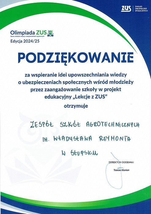 Witaj na stronie Zespołu Szkół Agrotechnicznych im. Władysława Reymonta w Słupsku. Zapraszamy do zapoznania się z ofertą kształcenia oraz aktualnościami szkolnymi.