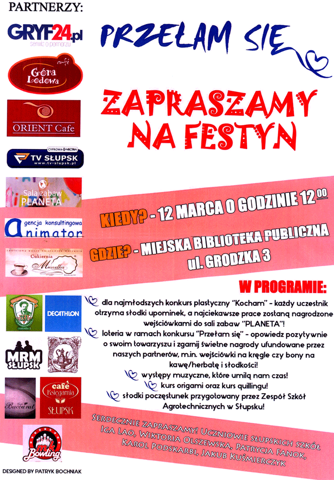27 stycznia 2016 - członkowie Szkolnego Klubu Wolontariusza z naszej szkoły pomagali opiekować się dziećmi podczas balu karnawałowego w Miejskim Przedszkolu Integracyjnym nr 8 w Słupsku. Wspólne zabawy i konkursy były okazją do integracji młodzieży z dziećmi.